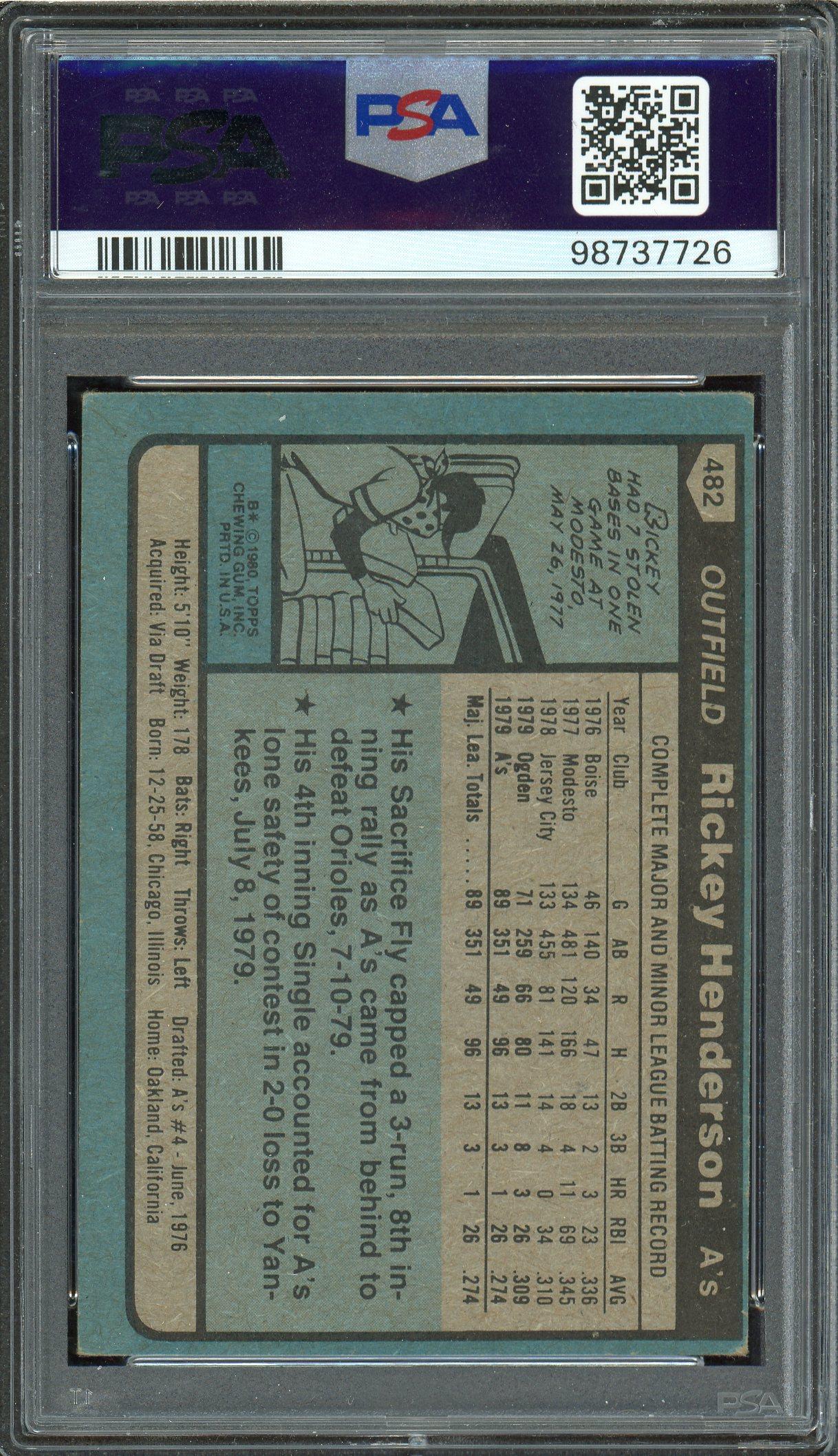 Rickey Henderson Signed 1980 Topps Rookie Card #482 PSA w/10 Auto!