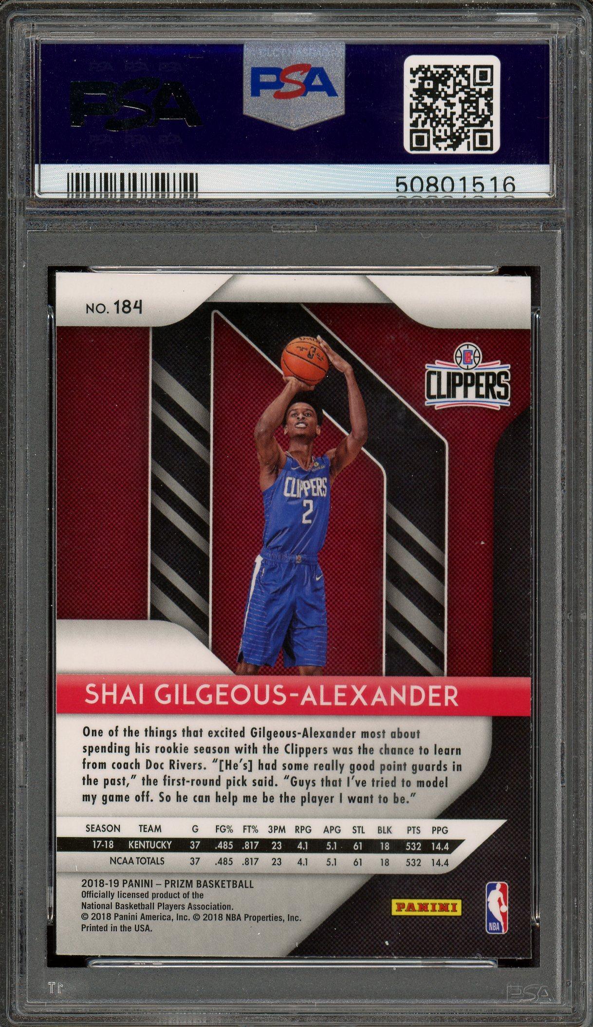 Shai Gilgeous Alexander 2018 Panini Prizm Rookie Card #184 PSA 9