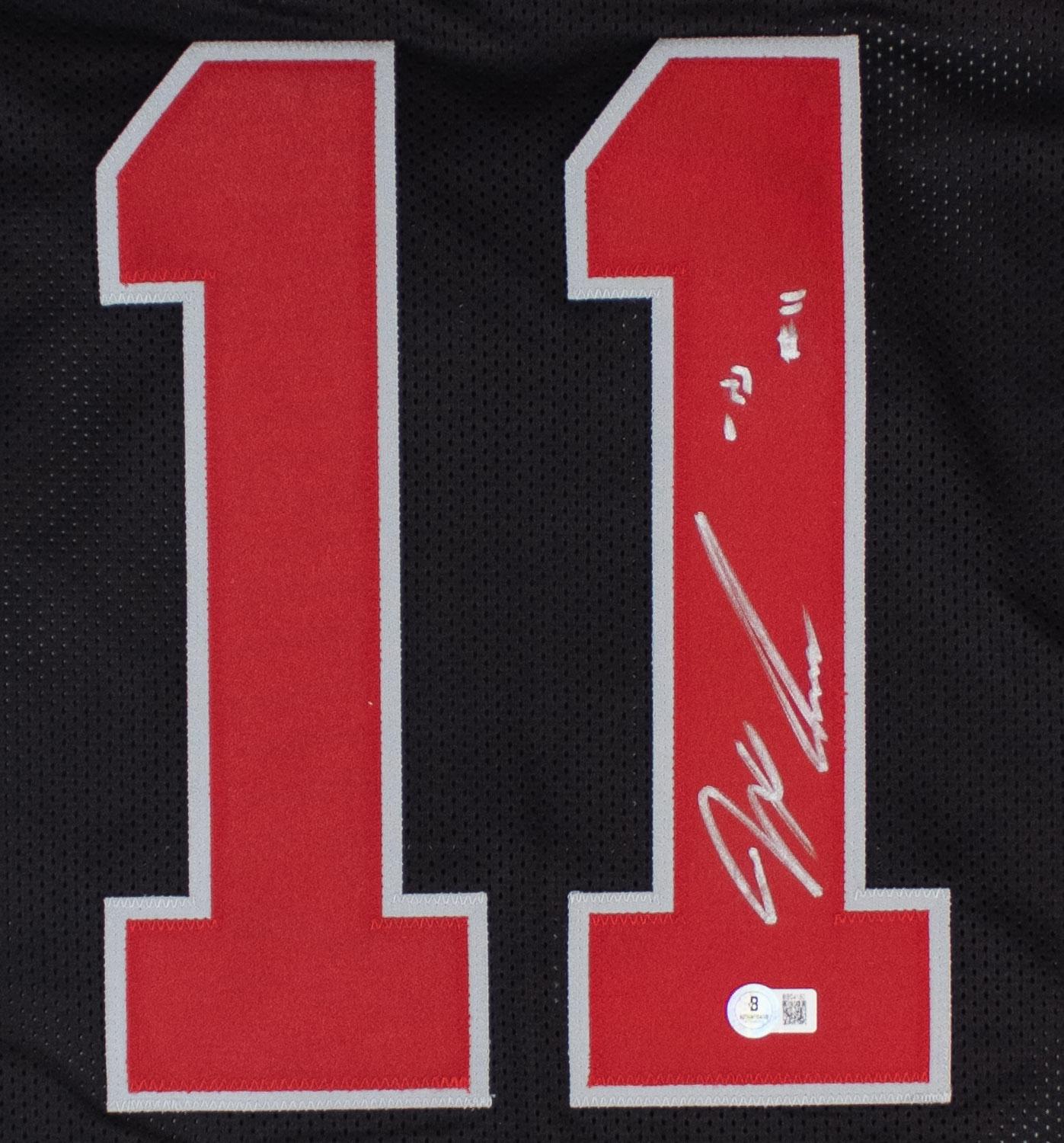 This autographed jersey has been personally hand-signed by Jaxon Smith-Njigba of the Ohio State Buckeyes. This autograph is certified by Beckett Authentication Services (BAS) Certification. It comes with the numbered authentication hologram with a QR code that verifies the authentication on the Beckett website.