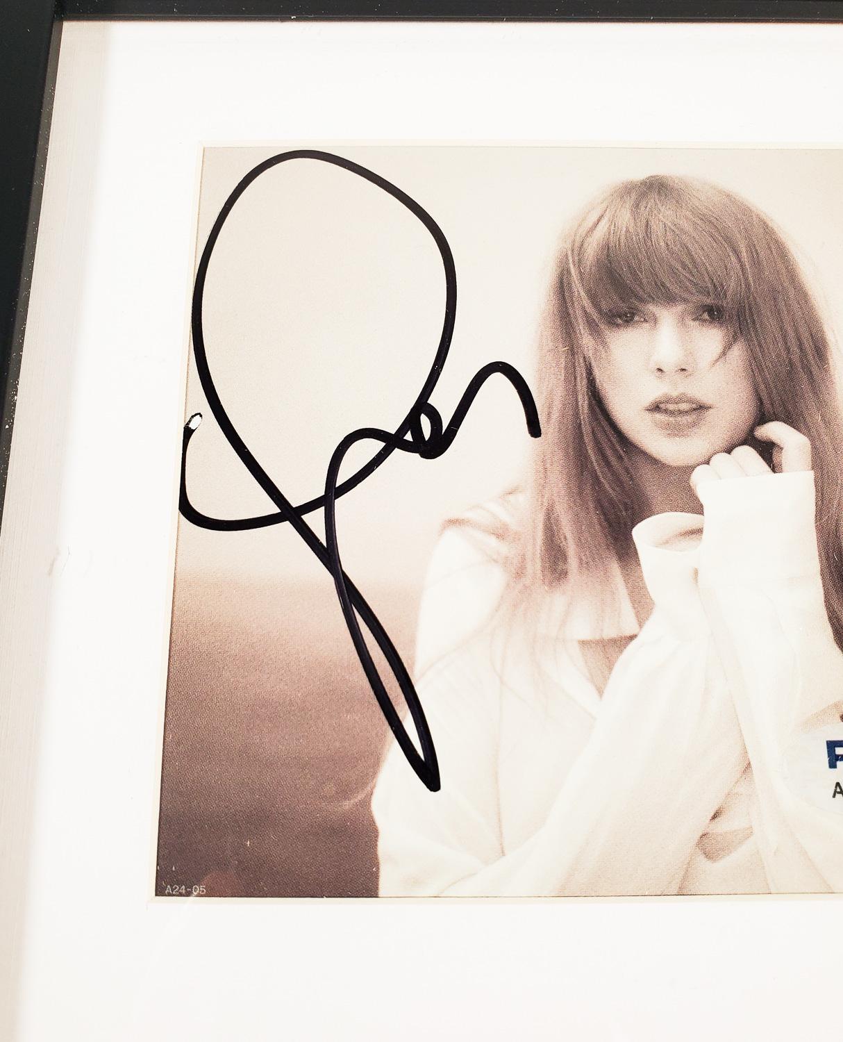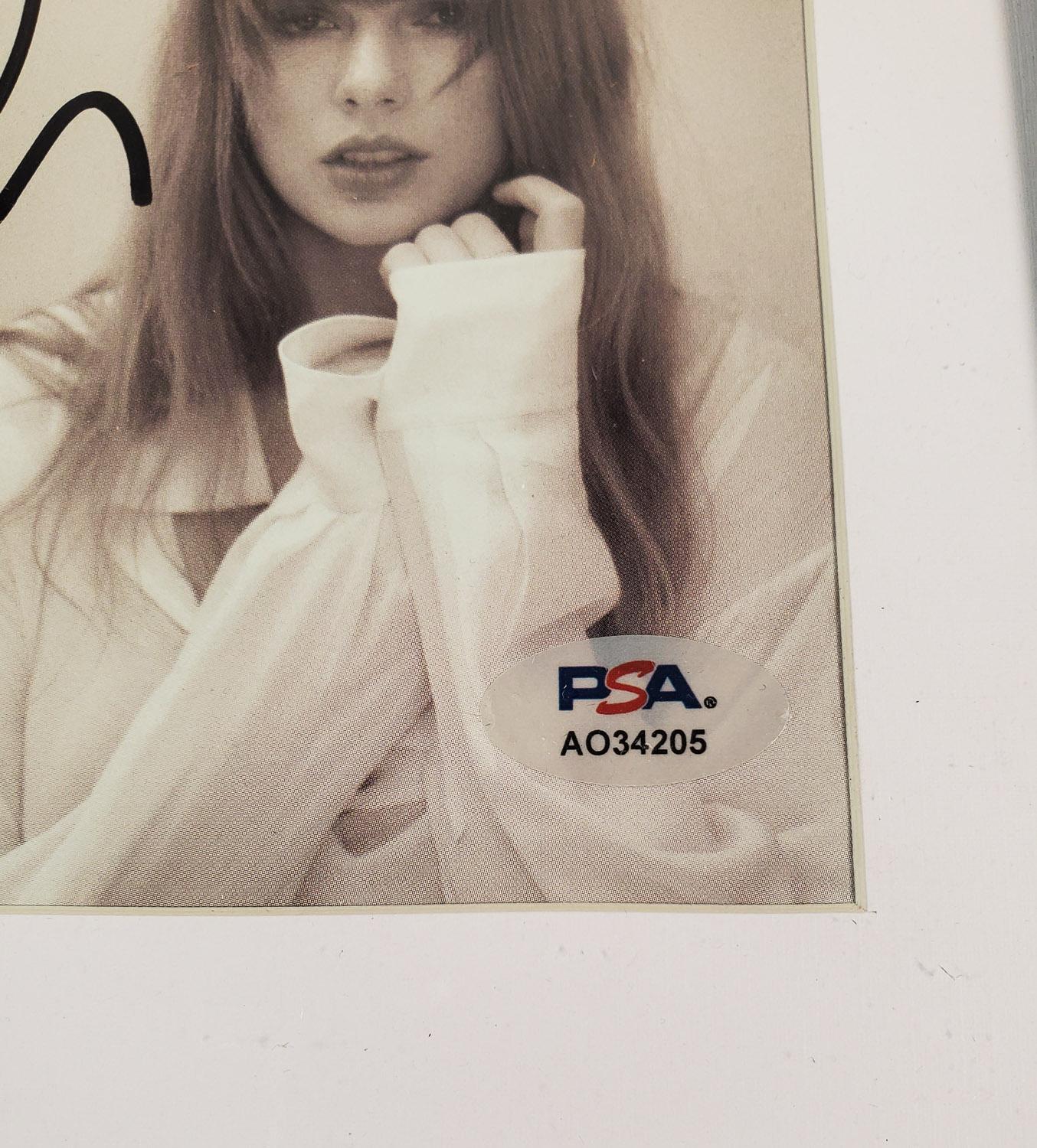 This autographed CD insert in an 8x13 frame has been personally hand-signed by Taylor Swift. This autograph is certified by PSA/DNA (Professional Sports Authenticators). It comes with the numbered authentication hologram which can be verified on the PSA website, psacard.com.