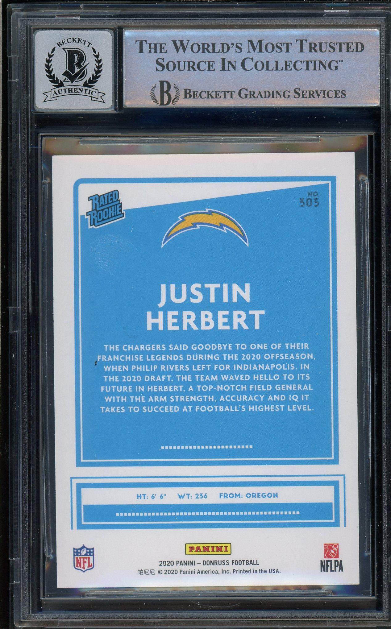 Justin Herbert Signed 2020 Donruss Rated Rookie Card #303 BAS w/10 Auto!