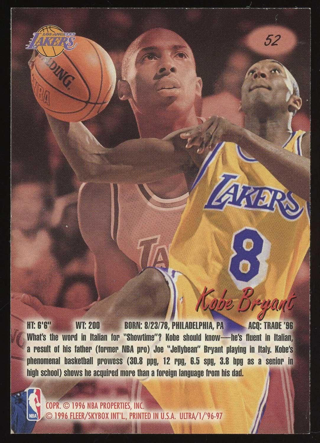 Kobe Bryant 1996 Fleer Ultra Rookie Card #52