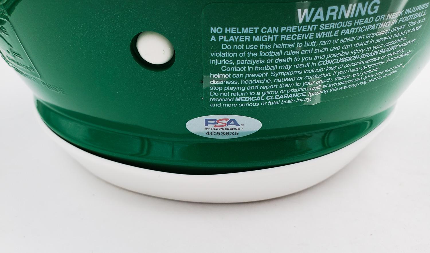 This autographed full size helmet has been personally hand-signed by Saquon Barkley of the Philadelphia Eagles. This autograph is certified by PSA/DNA's (Professional Sports Authenticators) In The Presence authentication. That means that a PSA representative was present when this item was signed. It comes with the PSA numbered authentication hologram which can be verified on the PSA website, psacard.com.