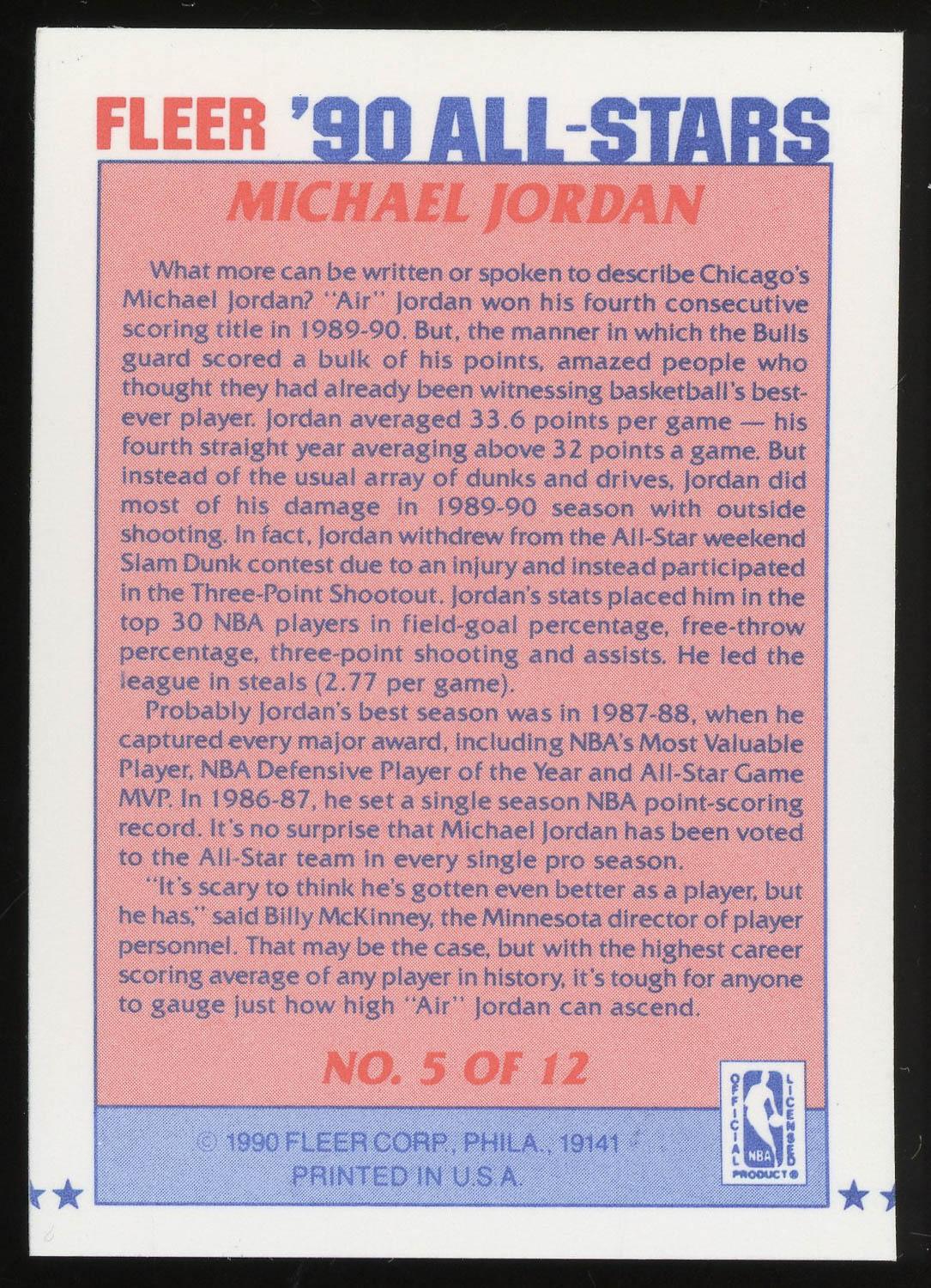Michael Jordan 1990 Fleer All Star Sticker Card #5. Please see pictures for details on the condition of this card.