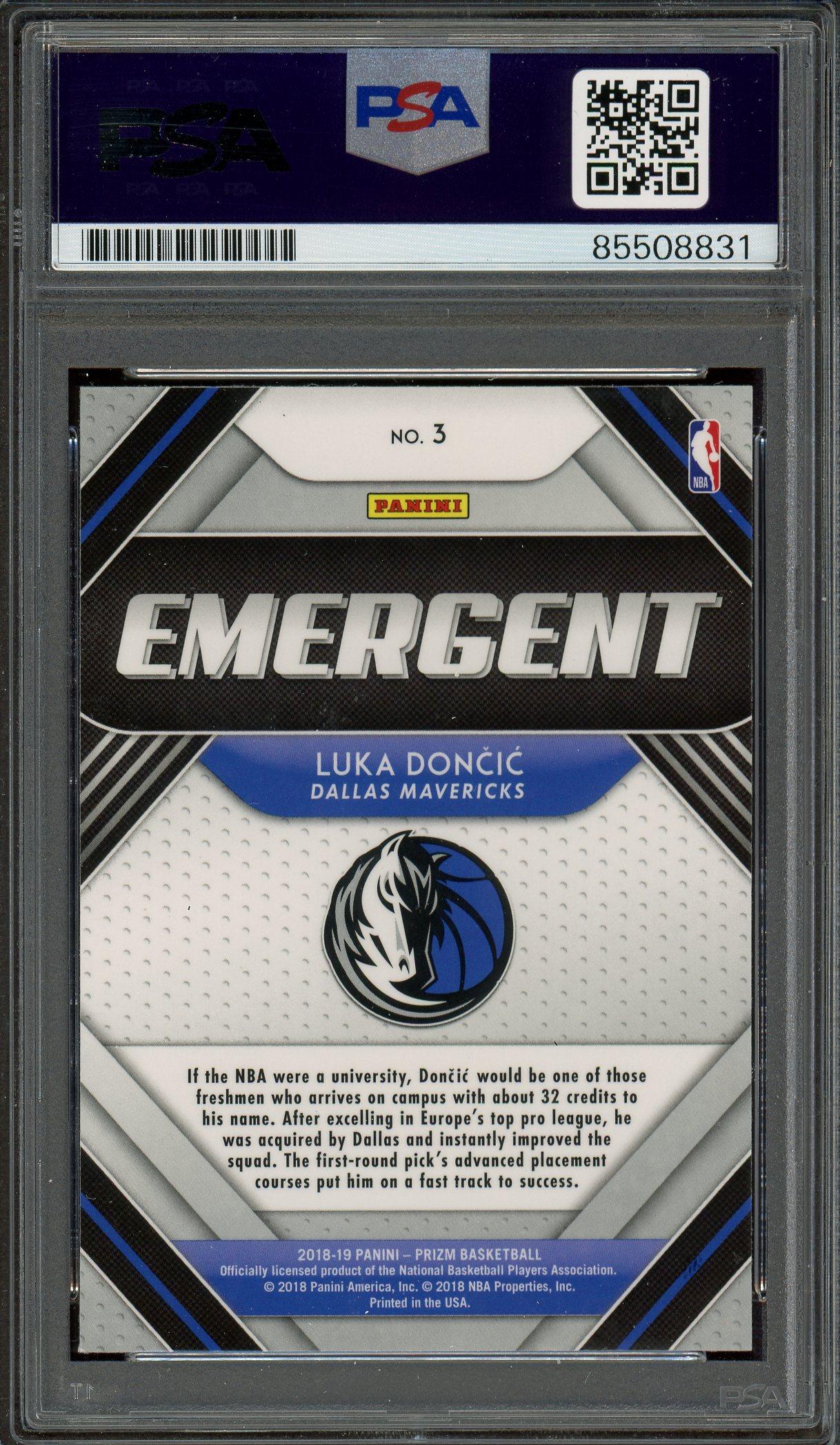 Luka Doncic Signed 2018 Panini Prizm Emergent Rookie Card #3 PSA