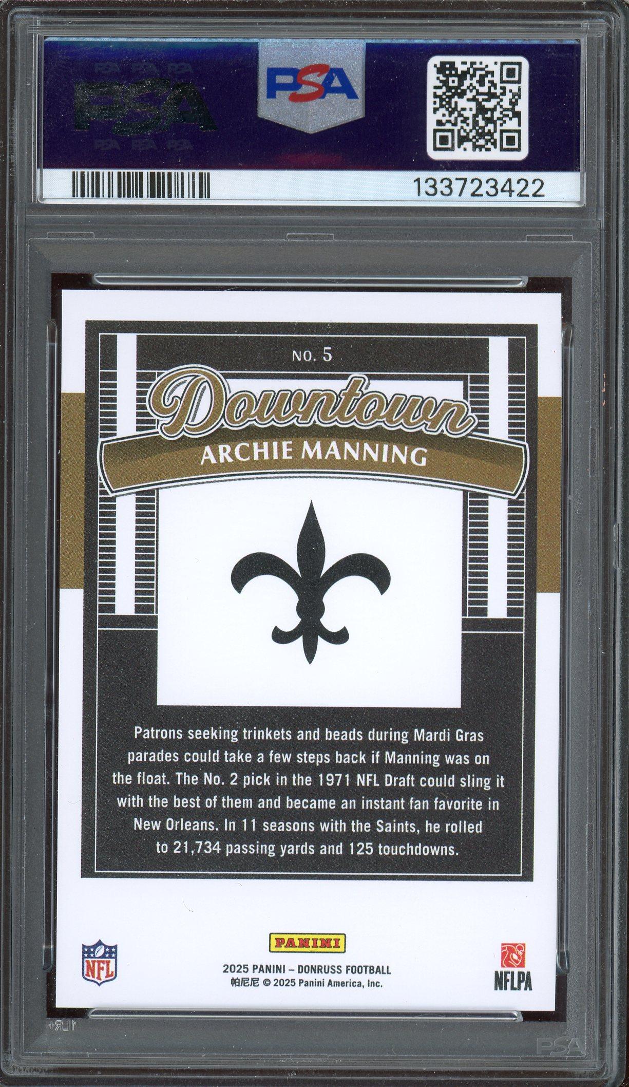 Archie Manning 2025 Donruss Downtown! Card #5 PSA Gem Mint 10!