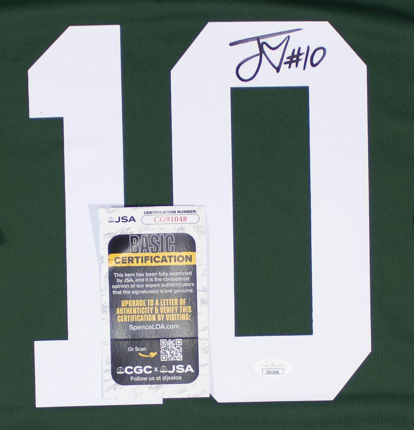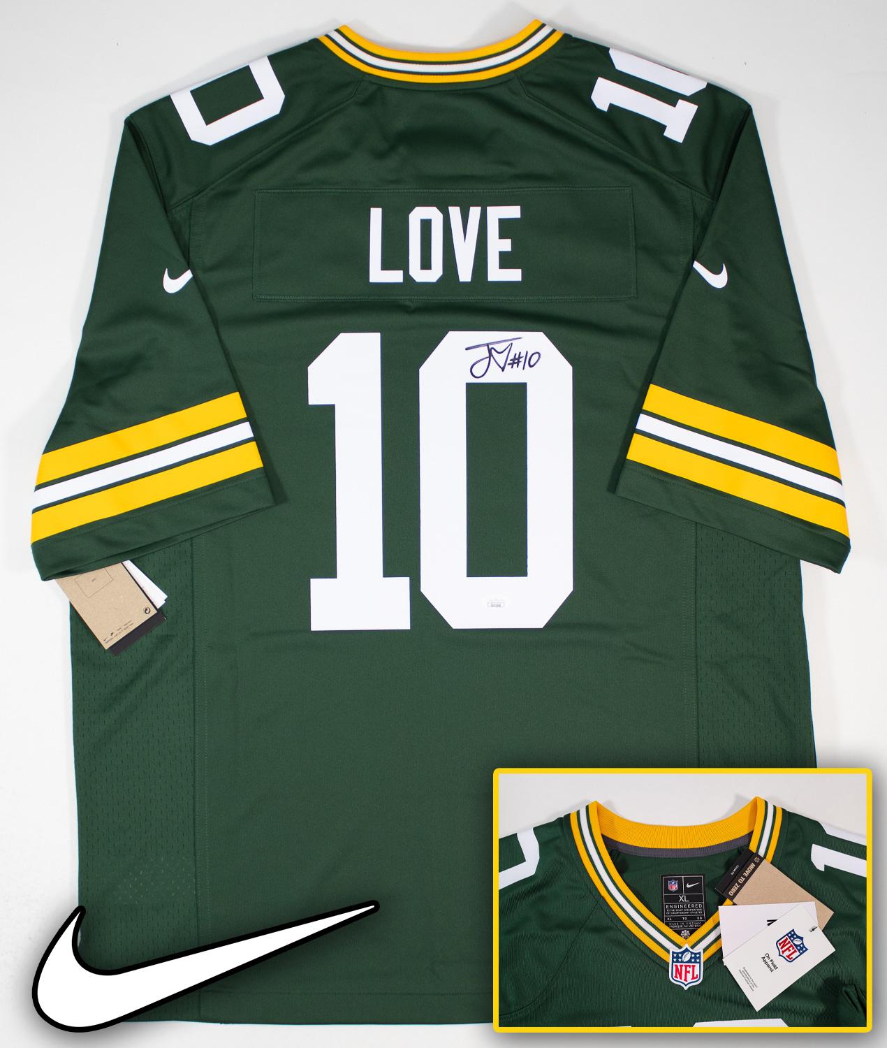 This autographed Nike NFL Replica Game jersey has been personally hand-signed by Jordan Love of the Green Bay Packers. This autograph is certified by James Spence Authentication (JSA). It comes with the numbered hologram and matching Certificate of Authenticity.