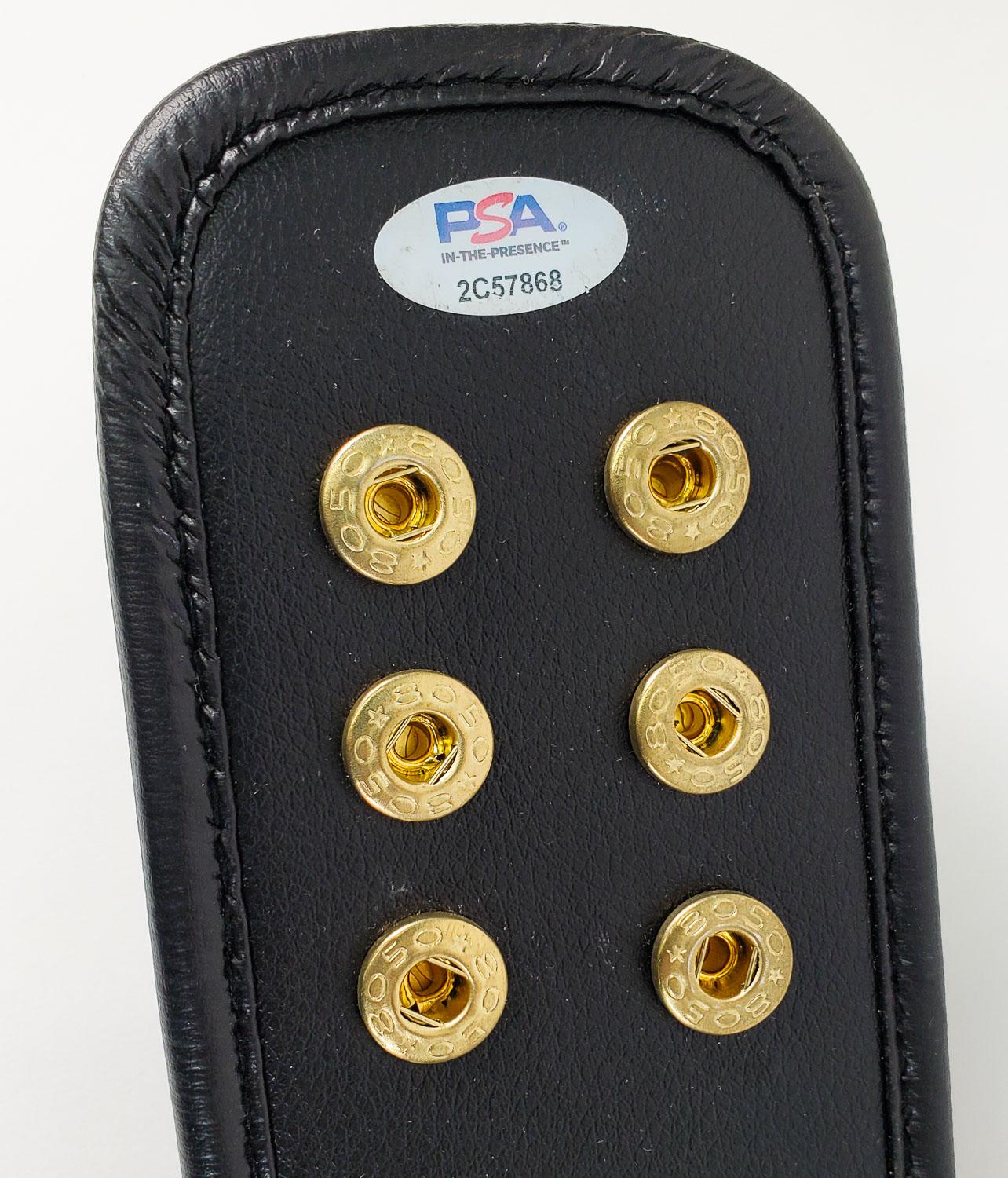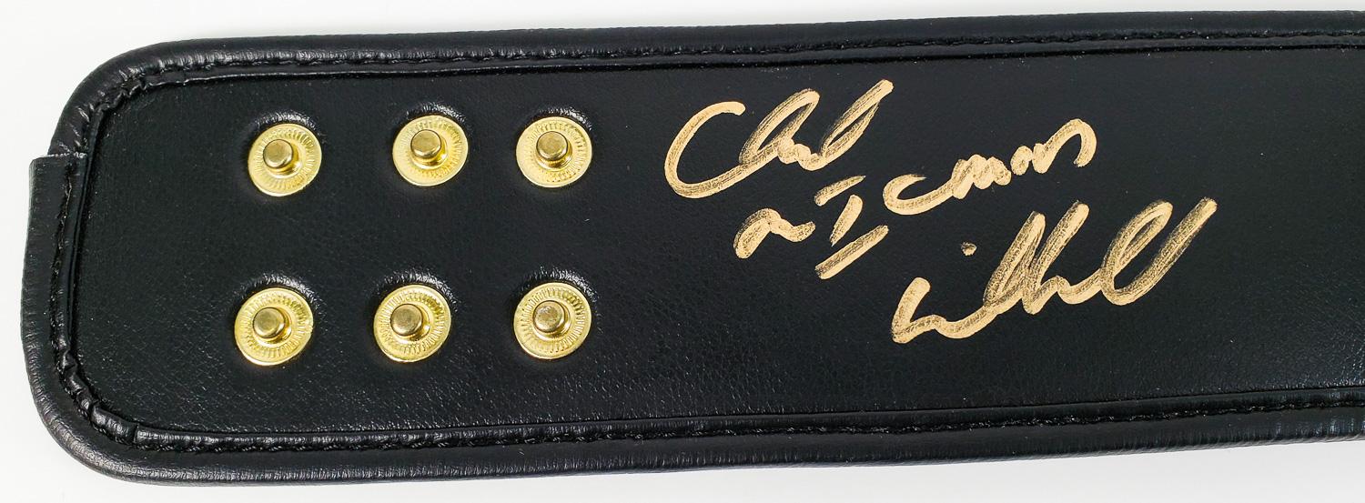 This autographed belt has been personally hand-signed by Chuck Liddell. This autograph is certified by PSA/DNA's (Professional Sports Authenticators) In The Presence authentication. That means that a PSA representative was present when this item was signed. It comes with the PSA numbered authentication hologram which can be verified on the PSA website, psacard.com.