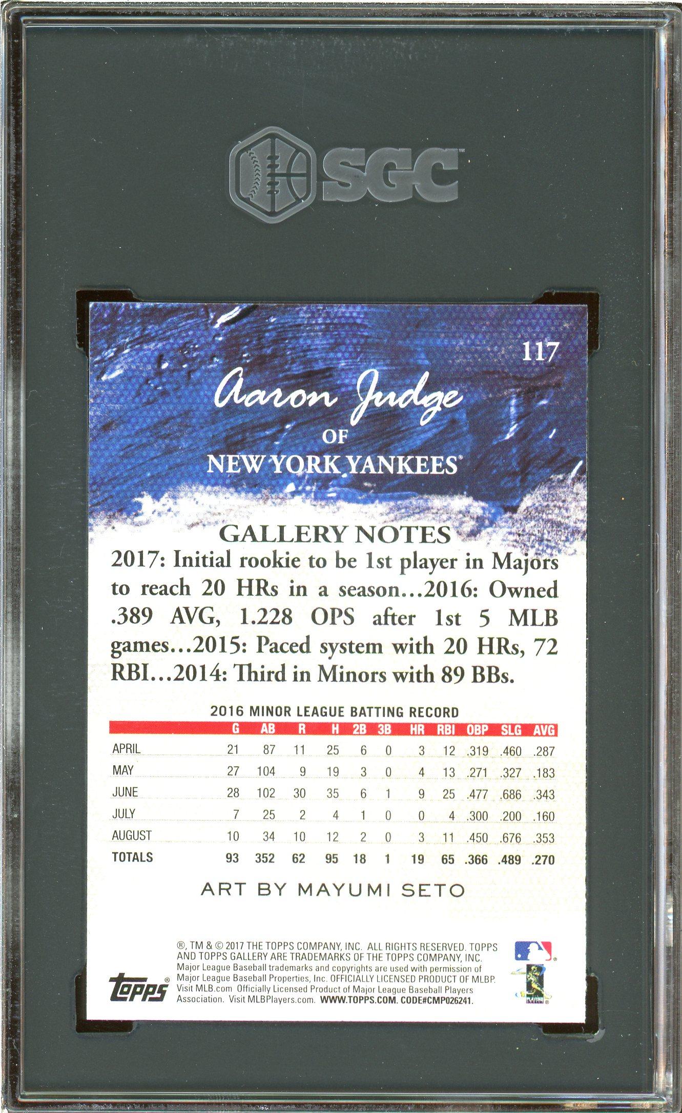 Aaron Judge 2017 Topps Gallery Canvas Rookie Card #117 SGC Gem Mint 10!