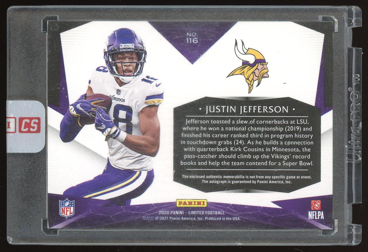 Justin Jefferson 2020 Panini Limited Rookie Patch Auto Card /175. Please see pictures for details on the condition of these cards.