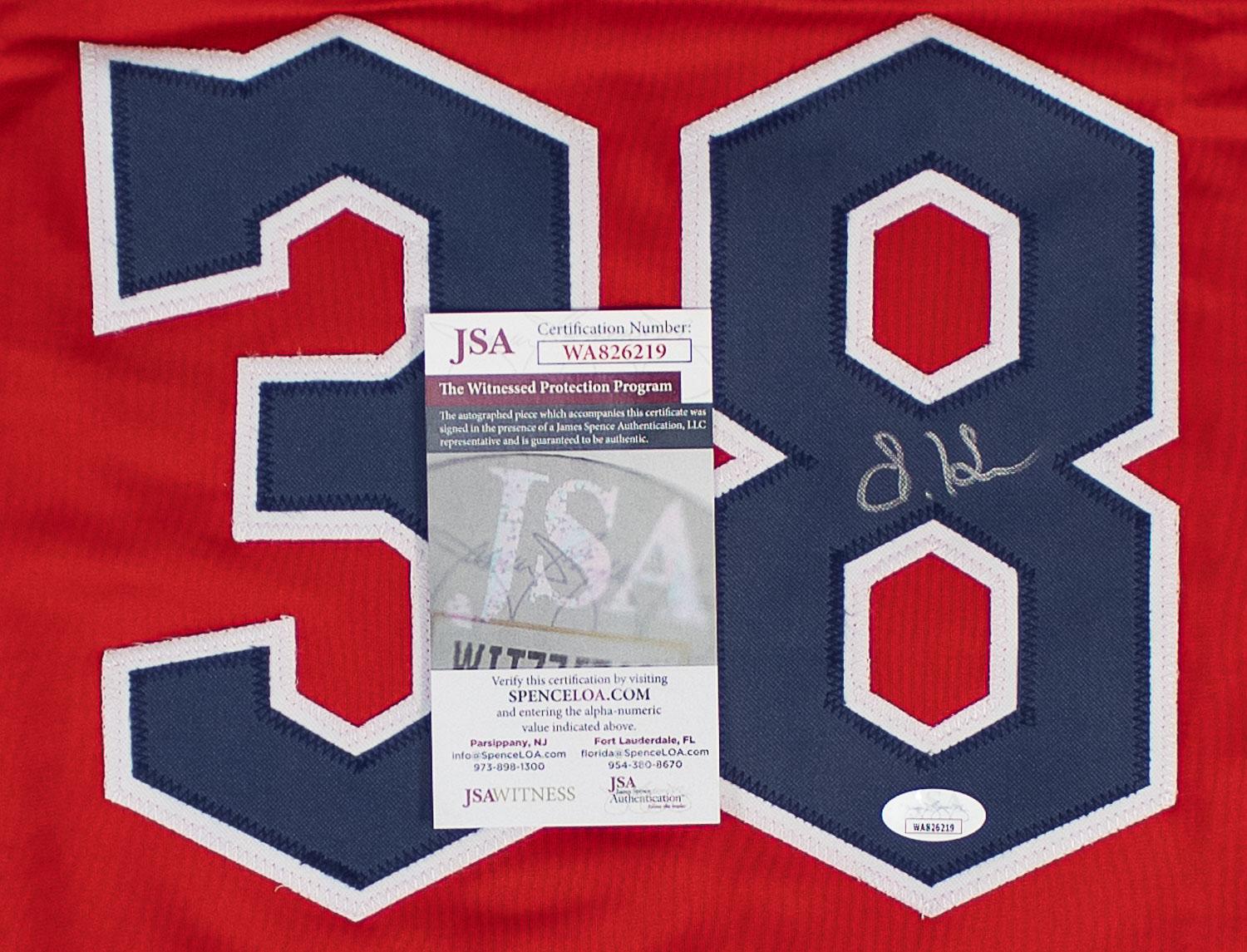 This autographed jersey has been personally hand-signed by Steven Kwan of the Cleveland Guardians. This autograph is certified by James Spence Authentication's (JSA) Witnessed Protection Program. That means that a JSA representative was present when this item was signed. It comes with the numbered hologram and matching Certificate of Authenticity.