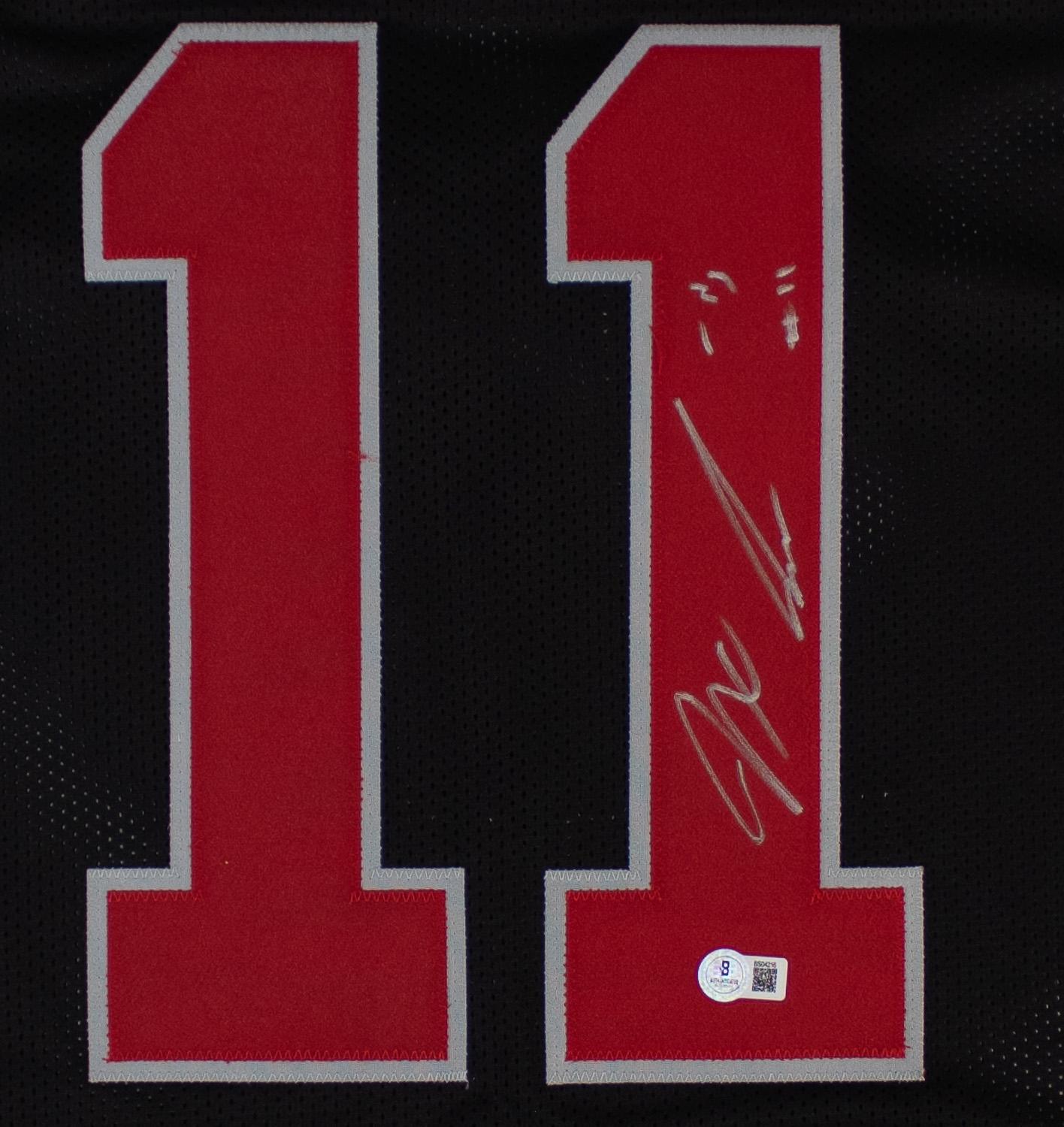 This autographed jersey has been personally hand-signed by Jaxon Smith-Njigba of the Ohio State Buckeyes. This autograph is certified by Beckett Authentication Services (BAS) Certification. It comes with the numbered authentication hologram with a QR code that verifies the authentication on the Beckett website.