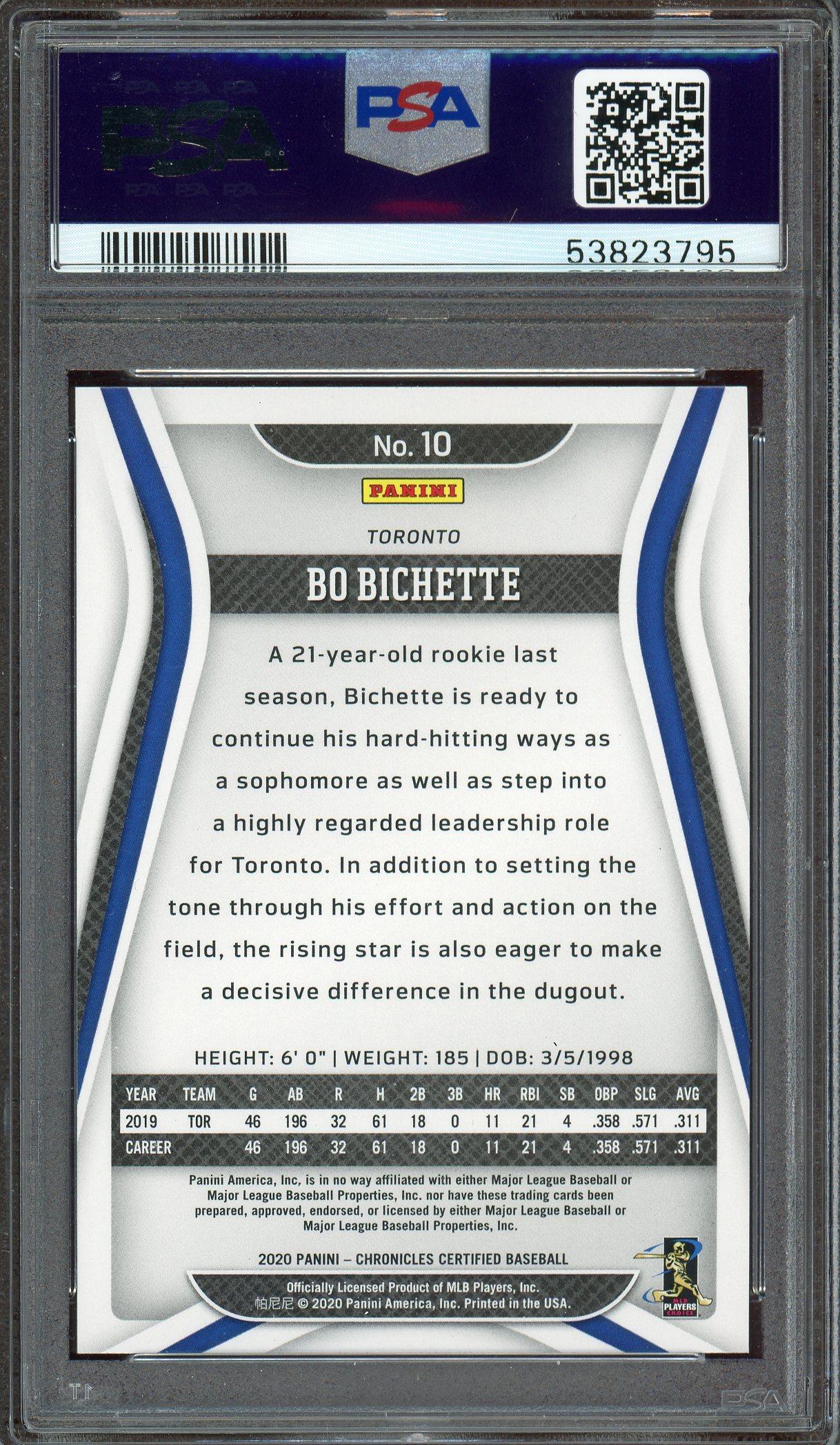 Bo Bichette 2020 Panini Chronicles Certified Rookie Card #10 PSA Gem Mint 10!
