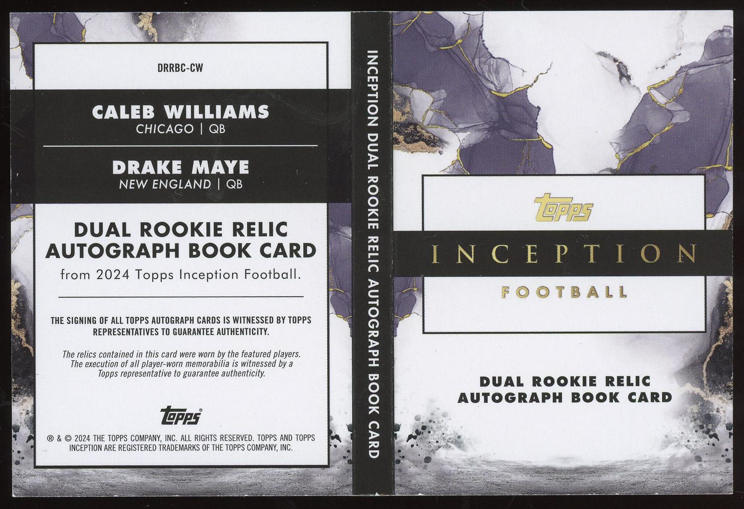 Caleb Williams & Drake Maye 2024 Topps Inception Dual Patch Booklet Rookie Auto Card