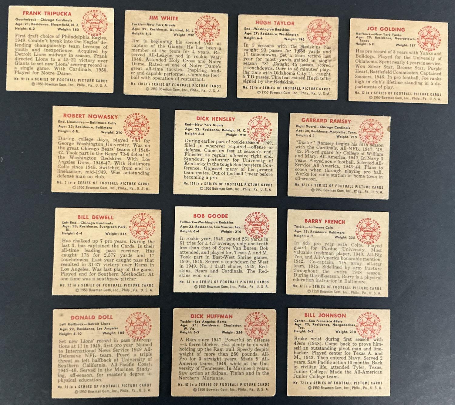 Lot of (13) 1950 Bowman Football Cards : Inc. Jim White!