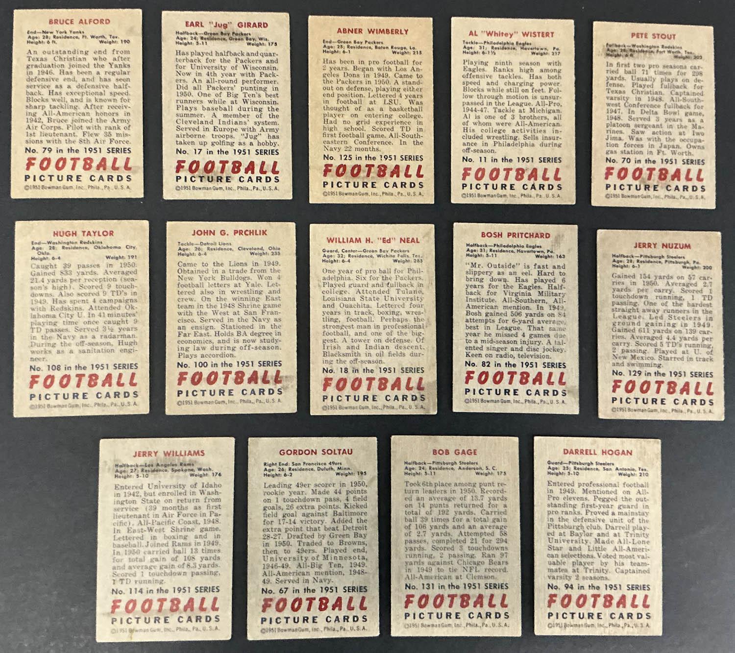 Lot of (14) 1951 Bowman Football Cards : Inc. Earl Girard!