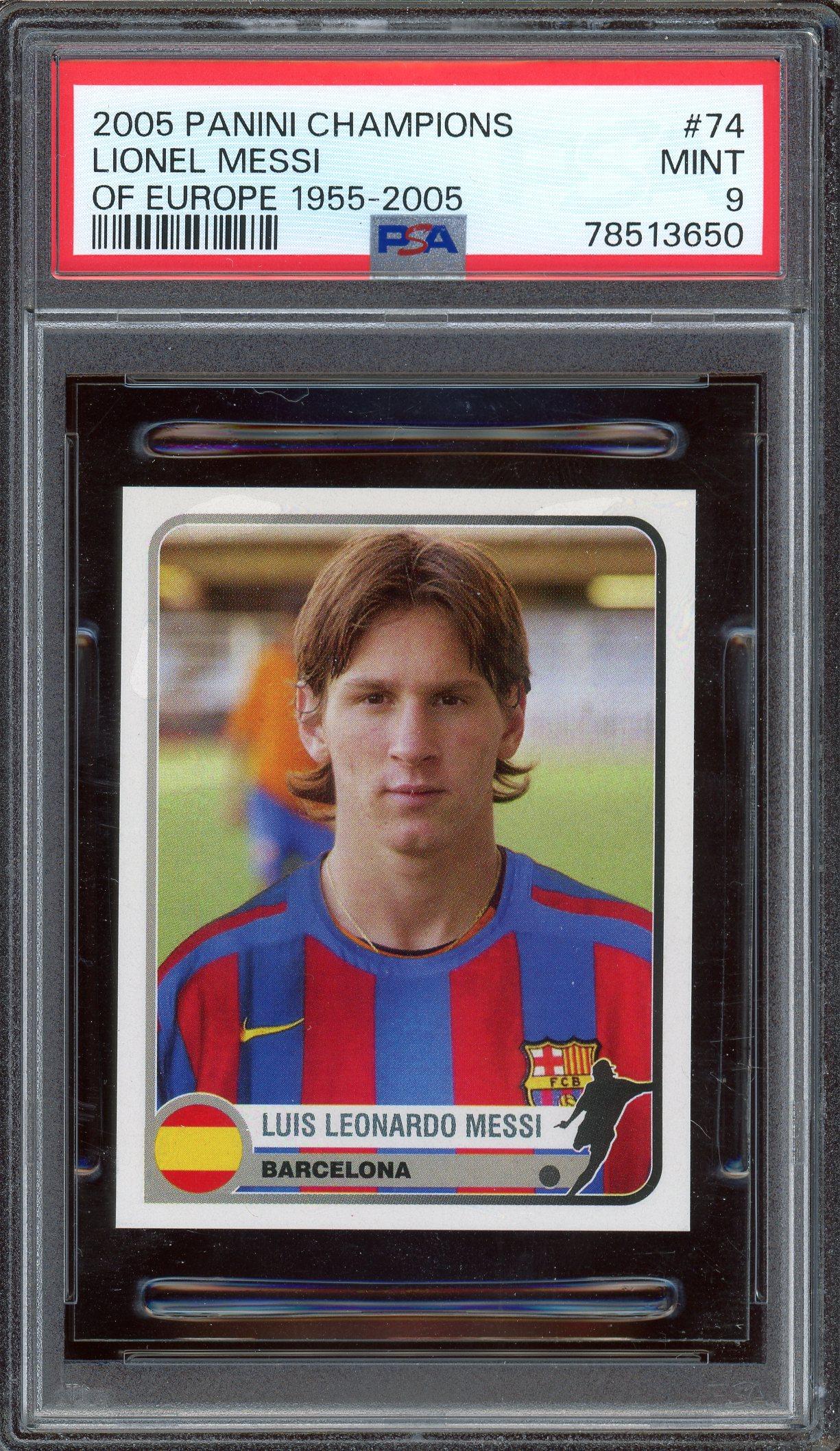Lionel Messi 2005 Panini Champions of Europe Card #74 PSA 9