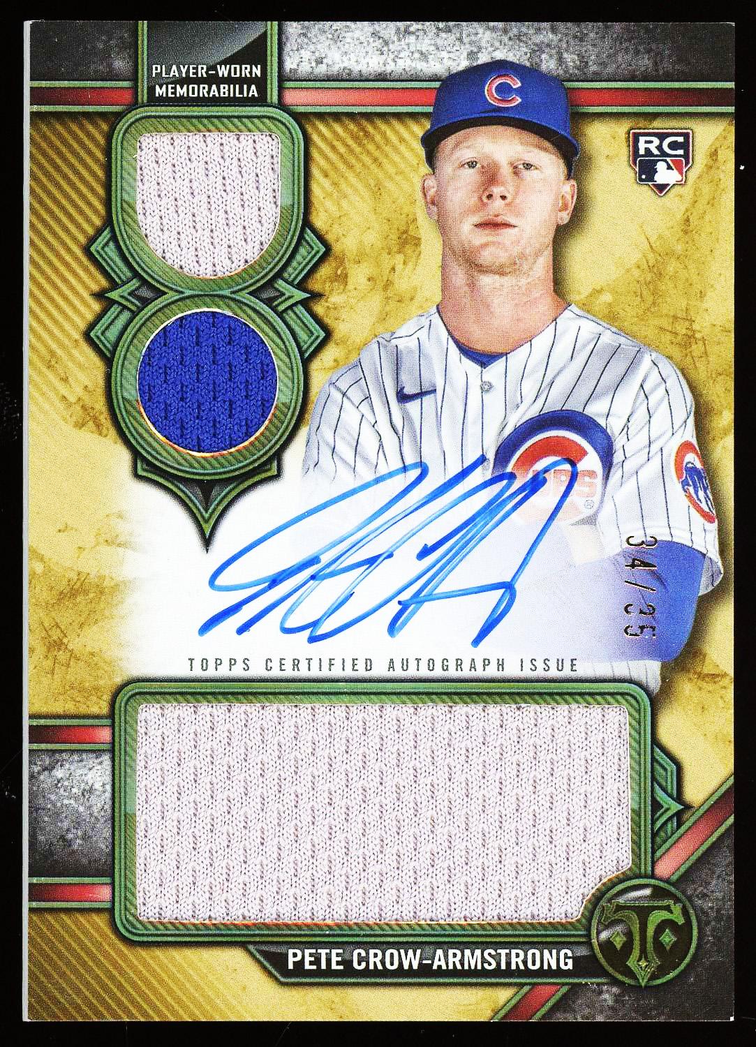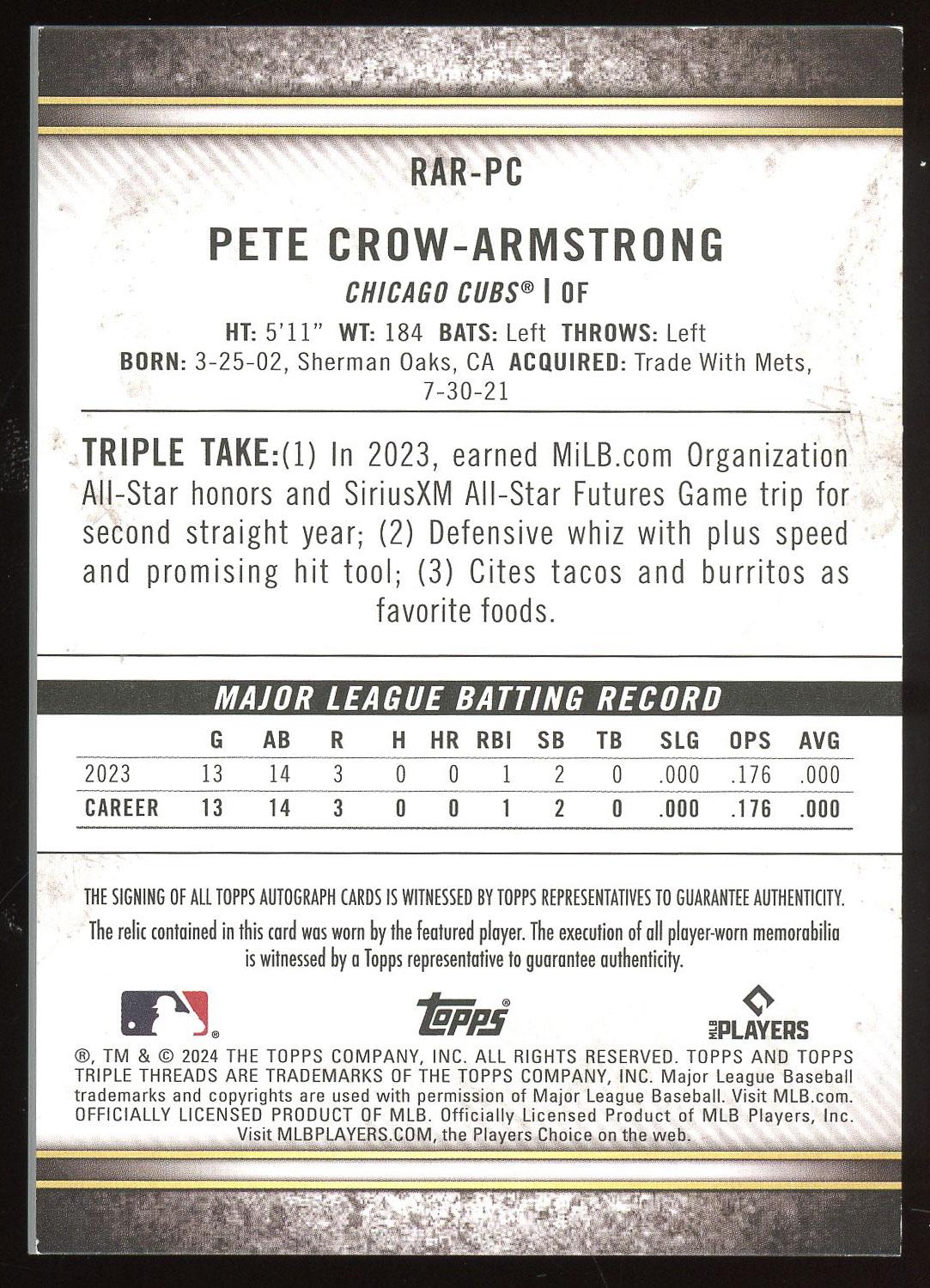 Pete Crow Armstrong 2024 Topps Triple Threads Triple Patch Player Worn Rookie Auto Card /35