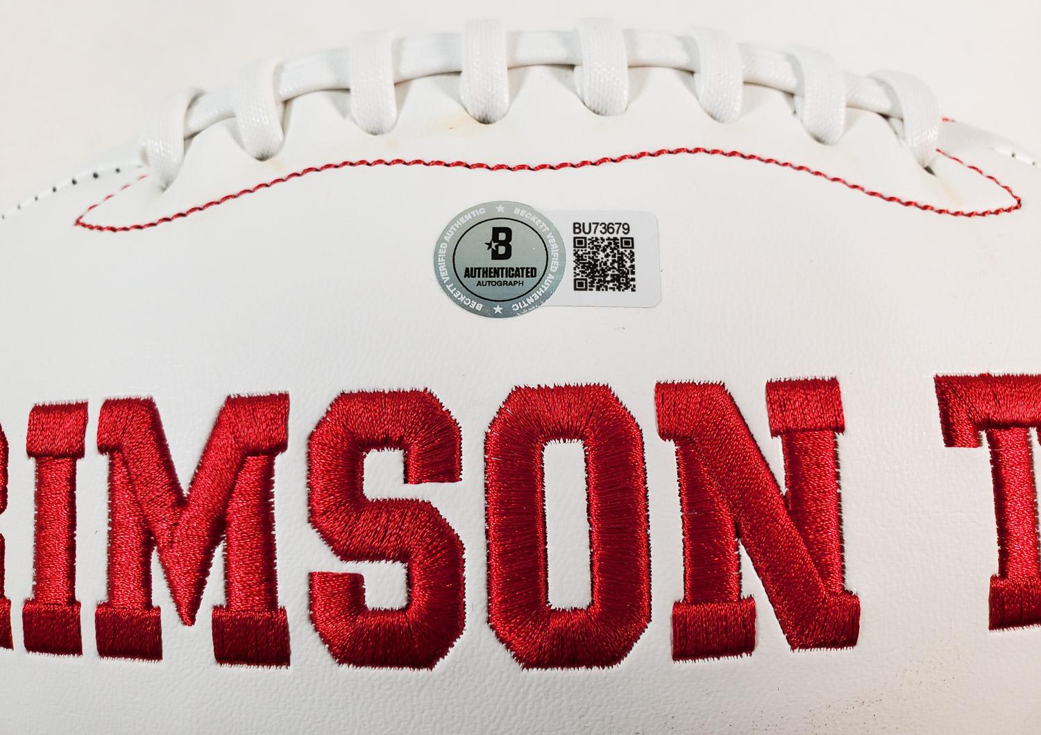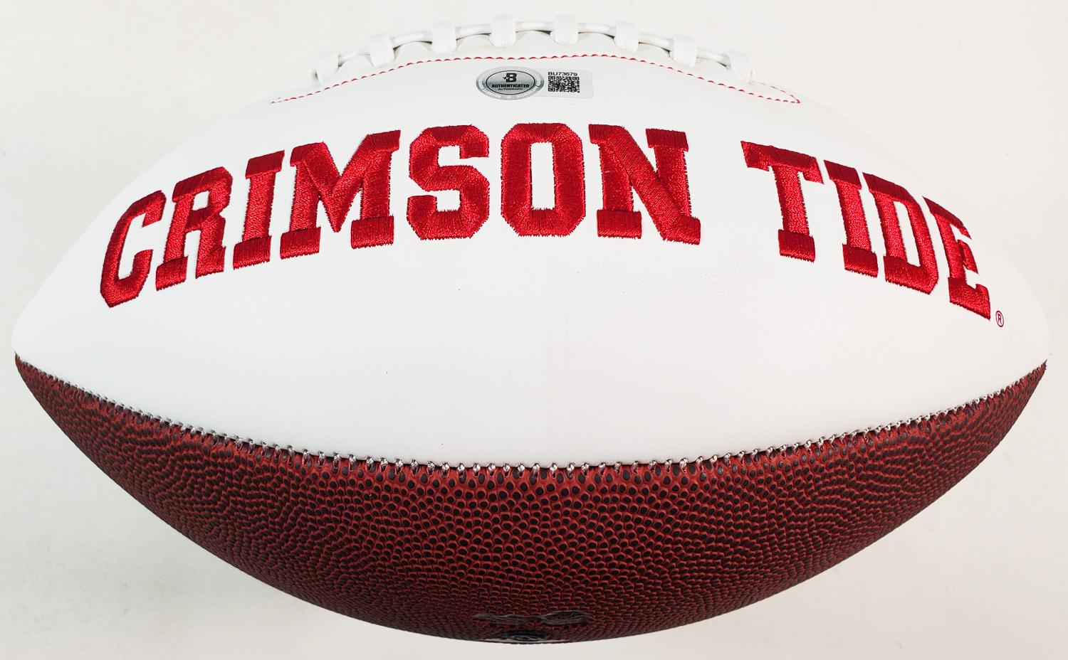 This autographed football has been personally hand-signed by Devonta Smith("Heisman 2020" inscription) of the Alabama Crimson Tide & Philadelphia Eagles. This autograph is certified by Beckett Authentication Services (BAS). It comes with the numbered authentication hologram which can be verified on the Beckett website.