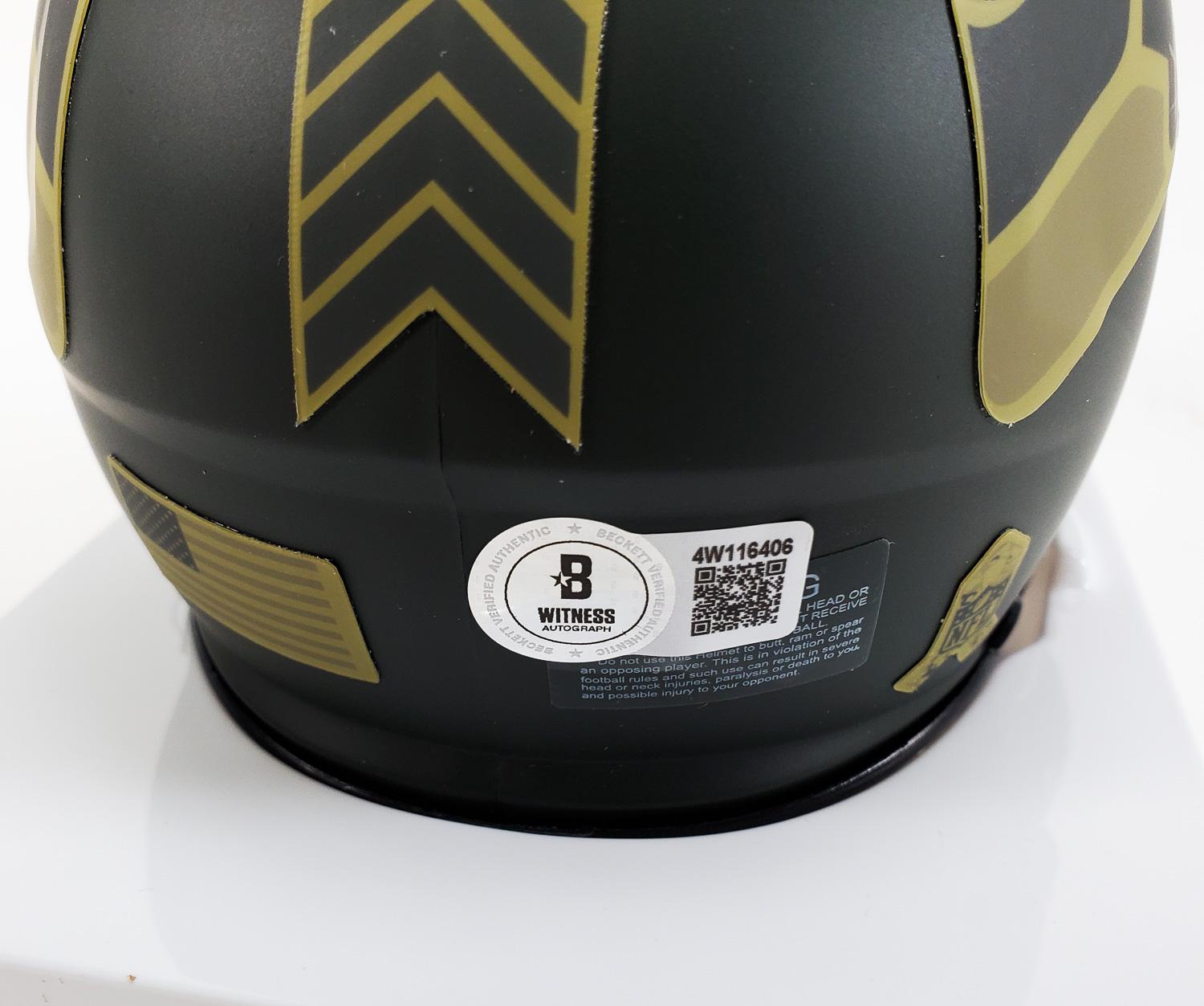 Steve Largent "HOF 95" Signed Seattle Seahawks 2025 Salute To Service Speed Mini Helmet (Beckett Witness Certified)