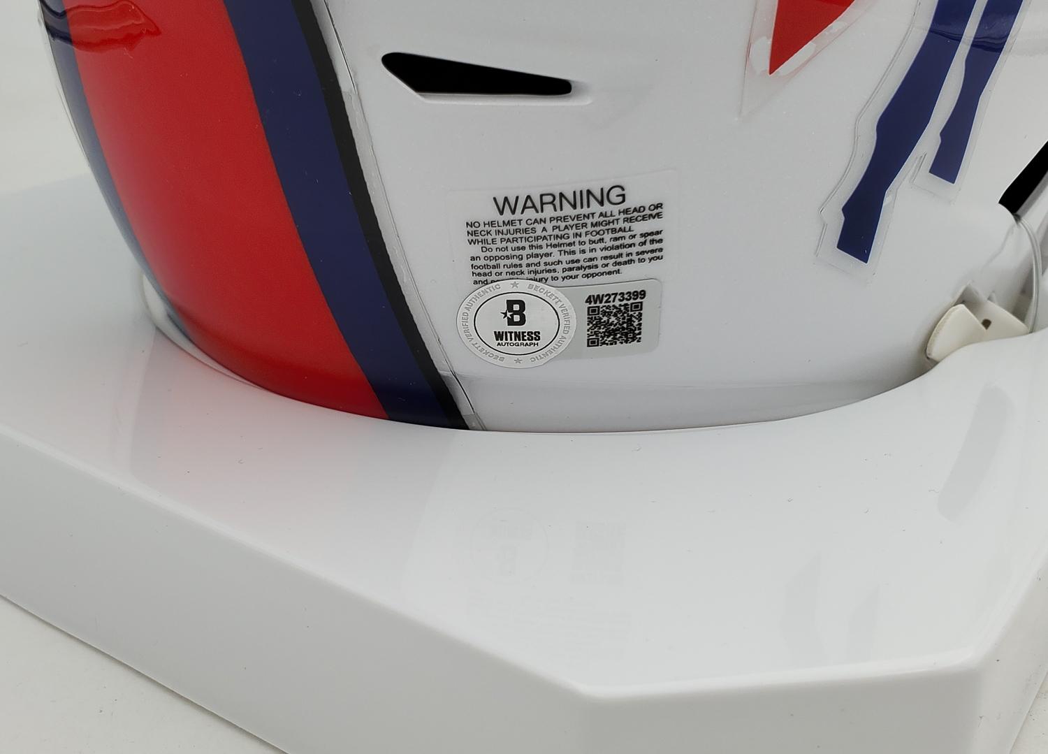 This autographed Riddell mid size MIDI helmet has been personally hand-signed by Doug Flutie of the Buffalo Bills. This autograph is certified by Beckett Authentication Services (BAS) Witness Certification. That means that a Beckett representative was present when this item was signed. It comes with the numbered authentication hologram with a QR code that verifies the authentication on the Beckett website.