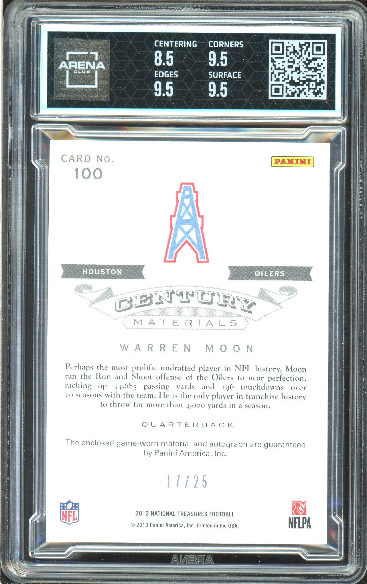 Warren Moon 2012 National Treasures Legend Century Materials Patch Auto /25 Arena Club 9