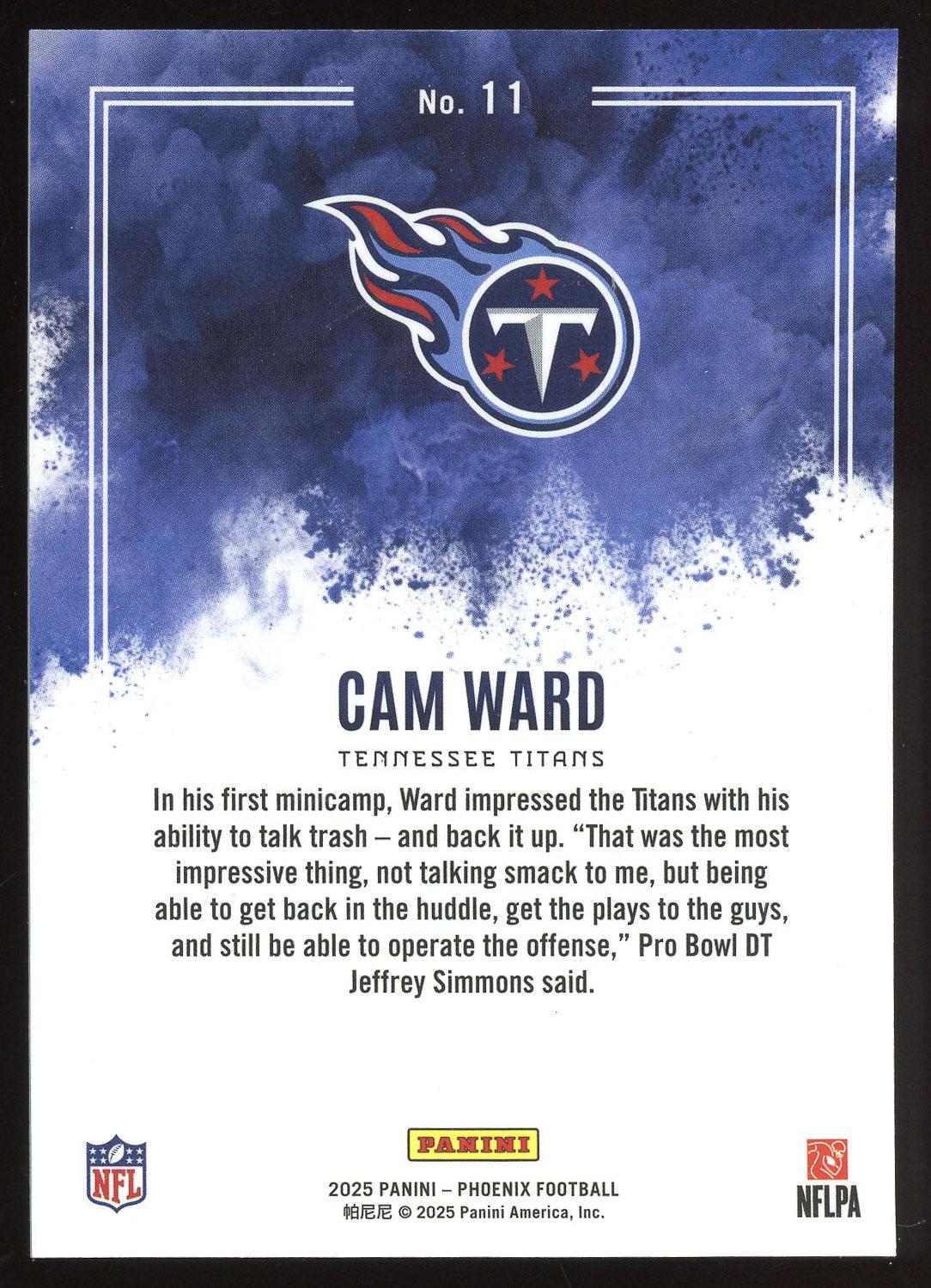 Cam Ward 2025 Panini Phoenix Color Blast Rookie Card #11. Please see pictures for details on the condition of this card.