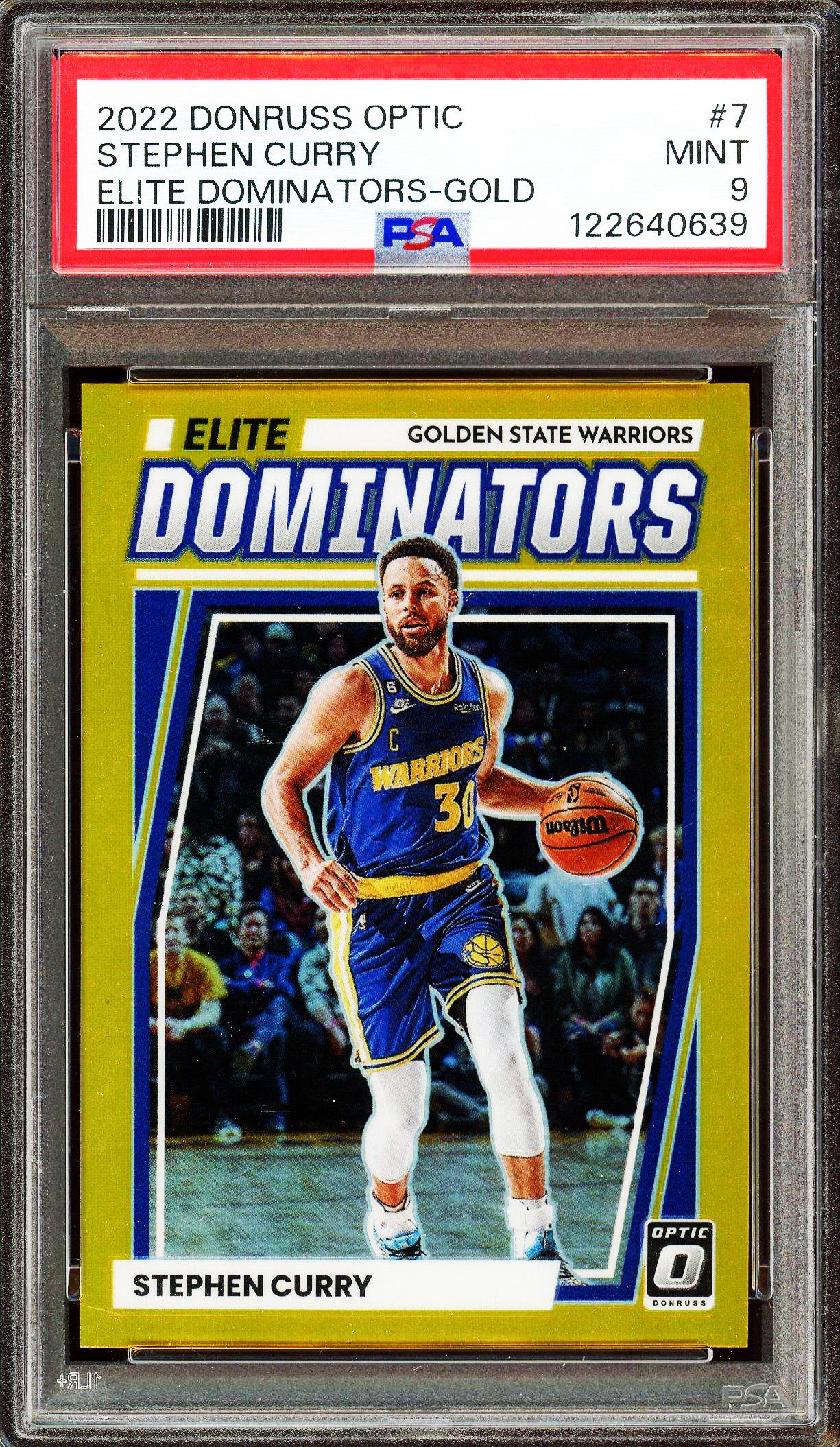Stephen Curry 2022 Donruss Optic Elite Dominators Gold Card /10 PSA 9: POP 2, 5 Higher!