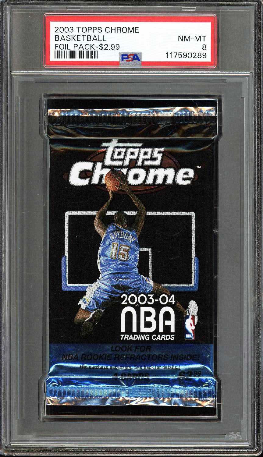 2003 Topps Chrome Basketball Foil Pack $2.99 PSA 8 (Possible LeBron James, Dwyane Wade, Carmelo Anthony RCs). This pack has been graded NM MT 8 by PSA (Professional Sports Authenticators).