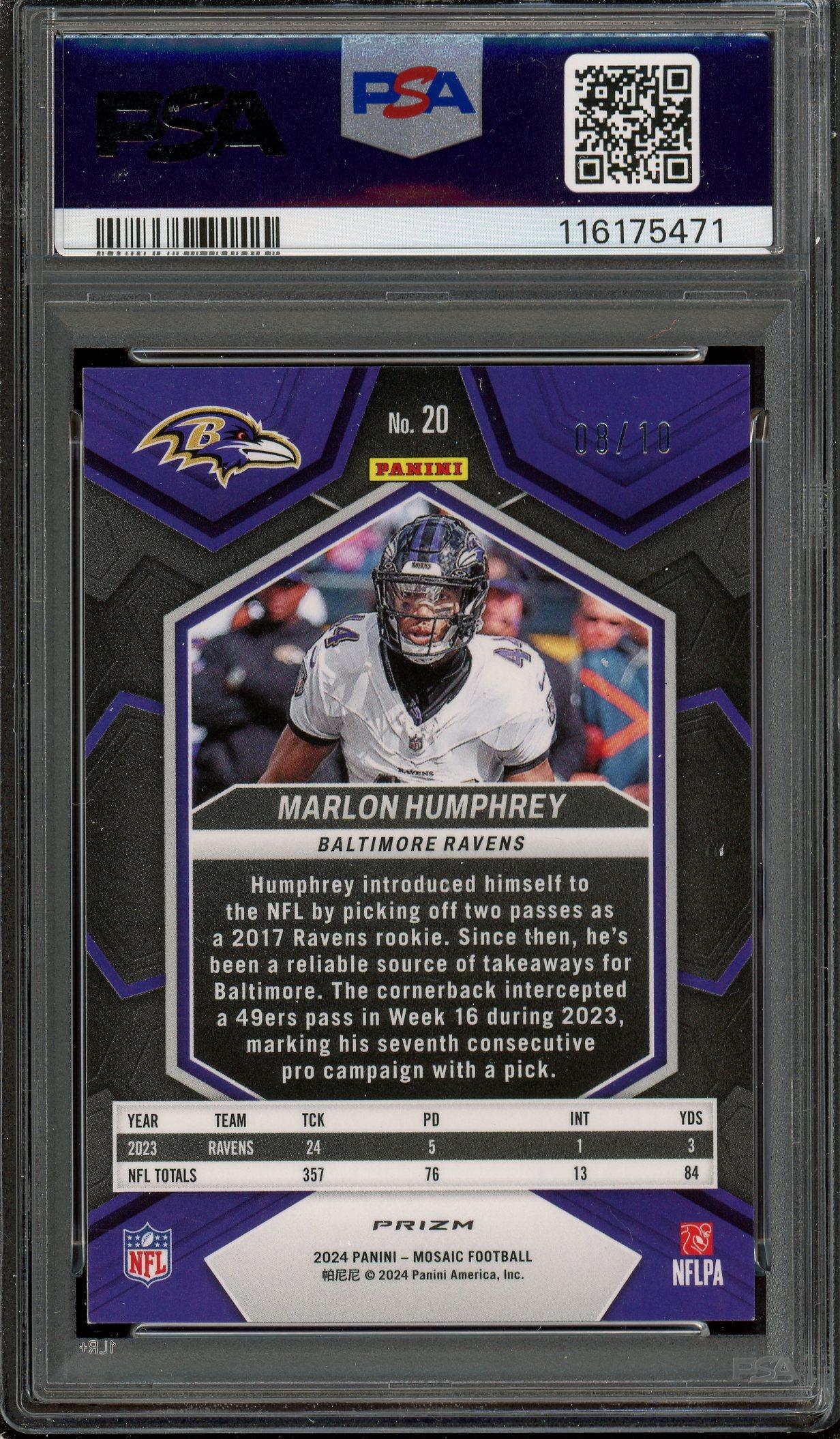 Marlon Humphrey 2024 Mosaic Gold Card /10 PSA 9