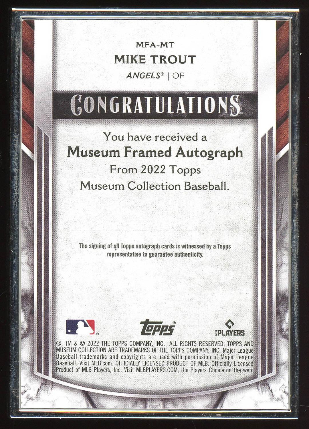 Mike Trout 2022 Topps Museum Collection Auto Card /15. Please see pictures for details on the condition of this card.