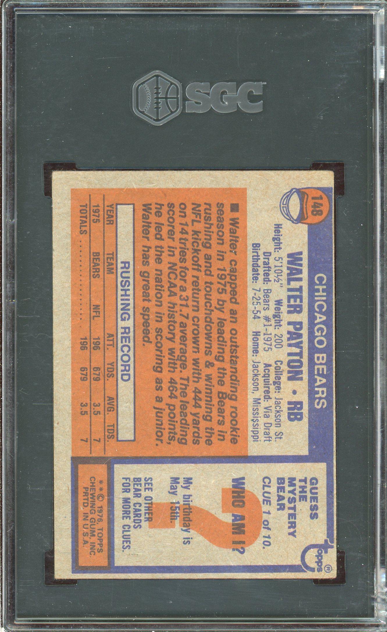 Walter Payton 1976 Topps Rookie Card #148 SGC 3