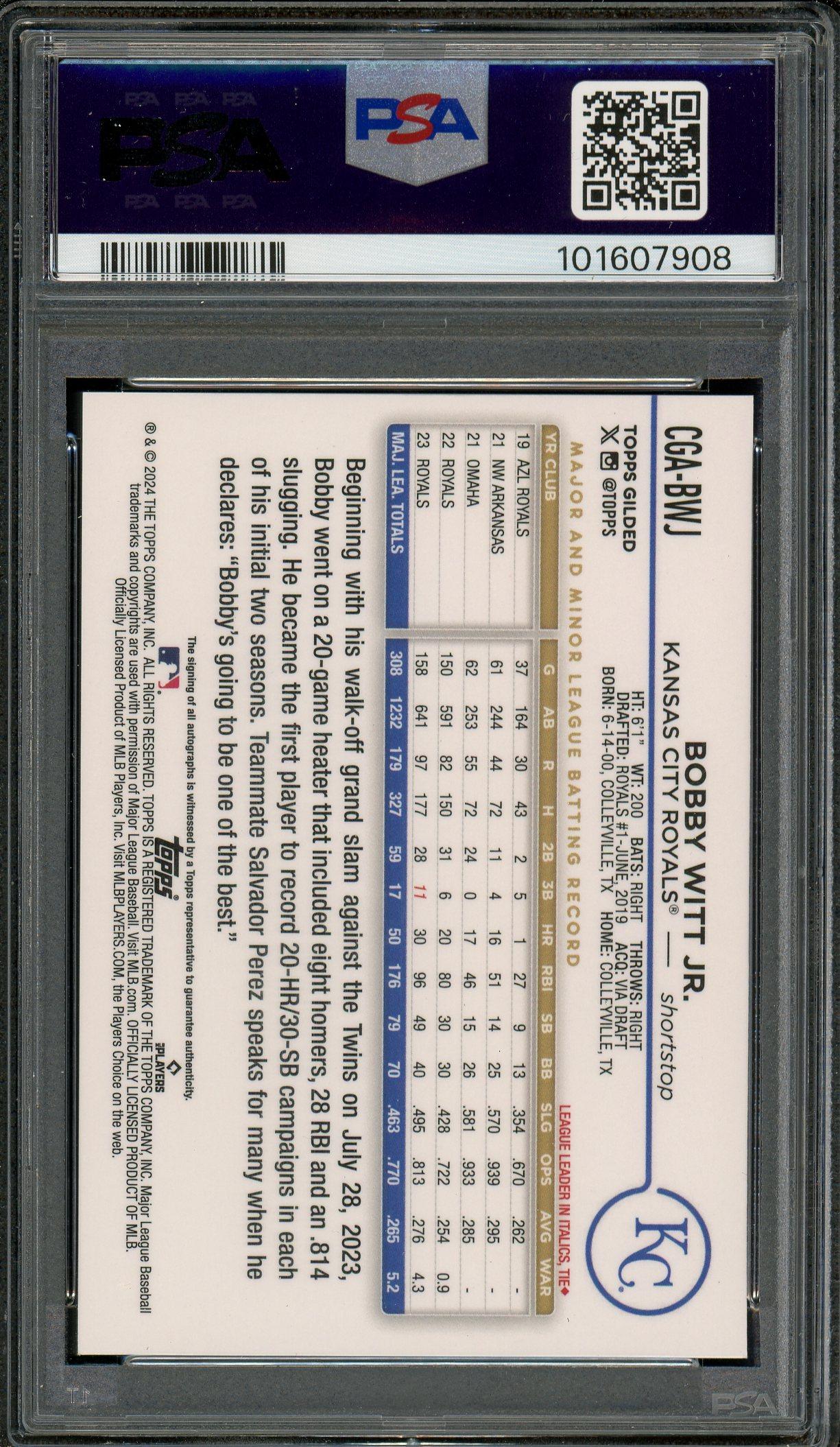 Bobby Witt Jr. 2024 Topps Gilded Collection Chrome Gold Auto Card /50 PSA Gem Mint 10 POP 11!
