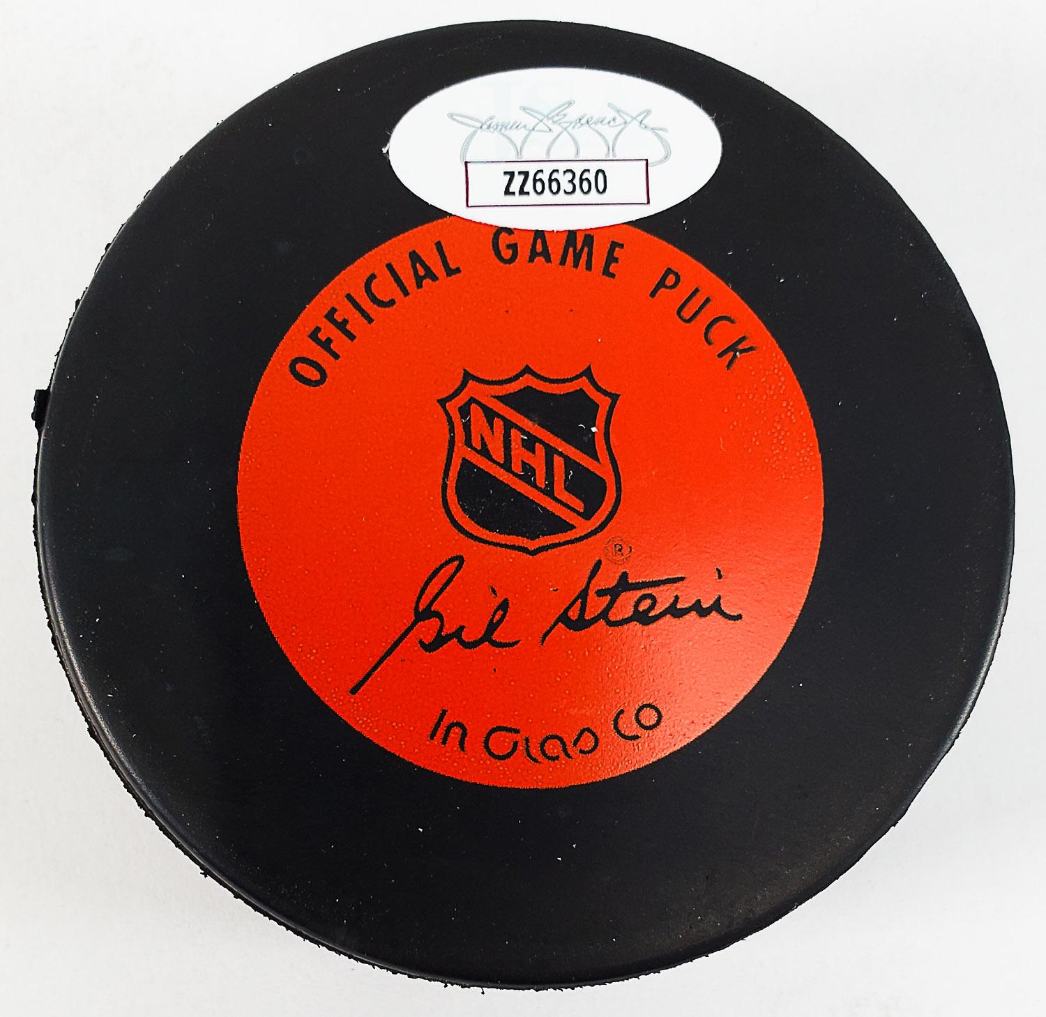 This autographed puck has been personally hand-signed by Wayne Gretzky of the Los Angeles Kings. This autograph is certified by James Spence Authentication (JSA). It comes with the numbered hologram and matching Letter of Authenticity. The signature is slightly smeared.