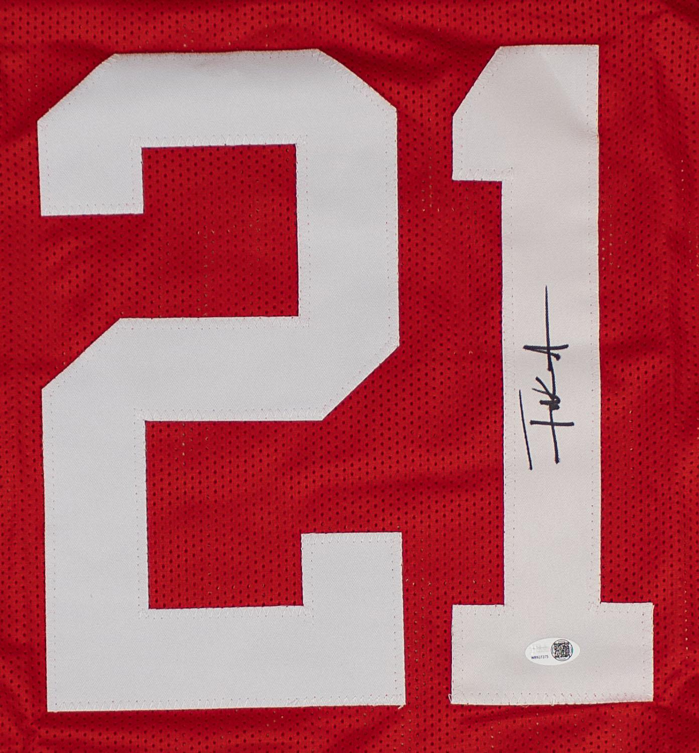 This autographed jersey has been personally hand-signed by Frank Gore of the San Francisco 49ers. This autograph is certified by James Spence Authentication's (JSA) Witnessed Protection Program. That means that a JSA representative was present when this item was signed. It comes with the numbered authentication hologram with a QR code that verifies the authentication on the JSA website.