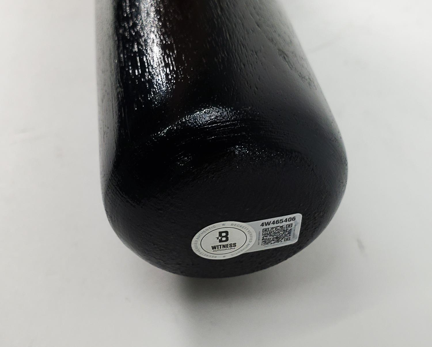 This autographed baseball bat has been personally hand-signed by Frank Thomas of the Chicago White Sox. This autograph is certified by Beckett Authentication Services (BAS) Witness Certification. That means that a Beckett representative was present when this item was signed. It comes with the numbered authentication hologram with a QR code that verifies the authentication on the Beckett website.