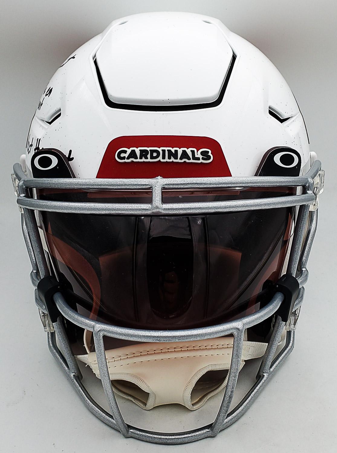 SpeedFlex Helmet: Josh Sweat "Make Em Sweat" & "Protect the Nest" Signed Full Size Cardinals On Field Authentic SpeedFlex Helmet w/ Visor (Beckett Witness Certified)