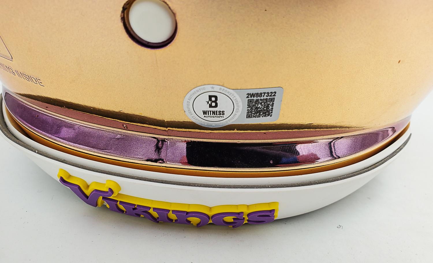 Authentic Helmet: Justin Jefferson Signed Full Size Vikings Chrome Speed Authentic Helmet w/ Visor (Beckett Witness Certified)