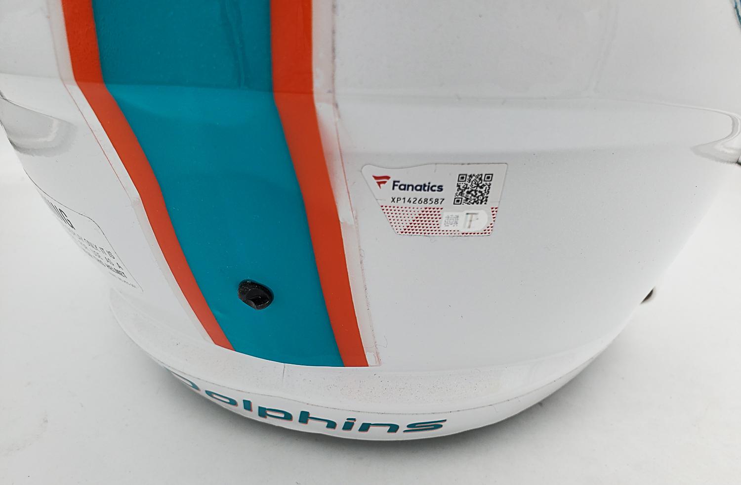 This autographed full size helmet has been personally hand-signed by Jaylen Waddle of the Miami Dolphins. This autograph is certified by Fanatics. It comes with the numbered hologram which can be verified on Fanatics.com.