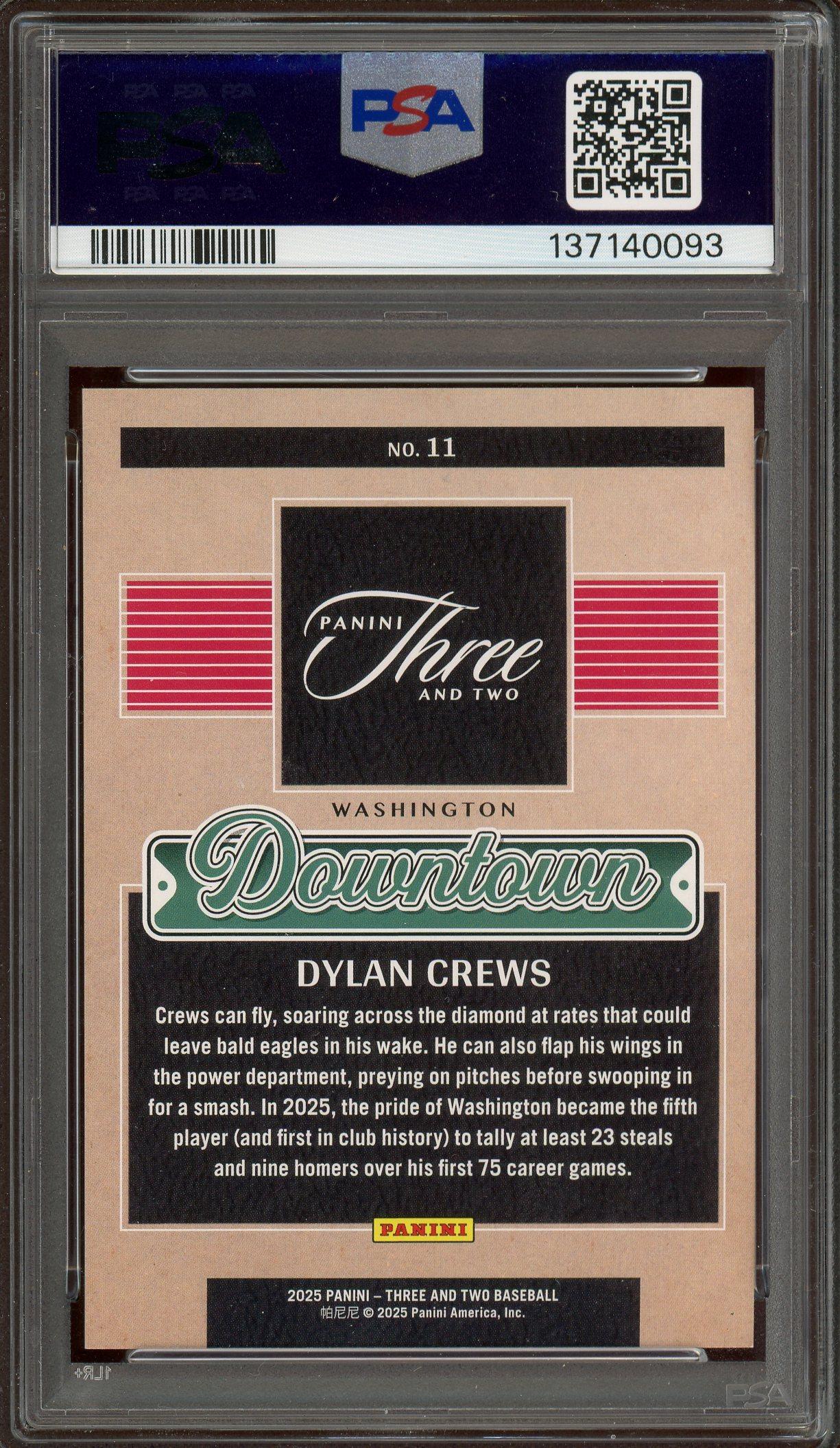 Dylan Crews 2025 Panini Three and Two Downtown Rookie Card #11 PSA 9