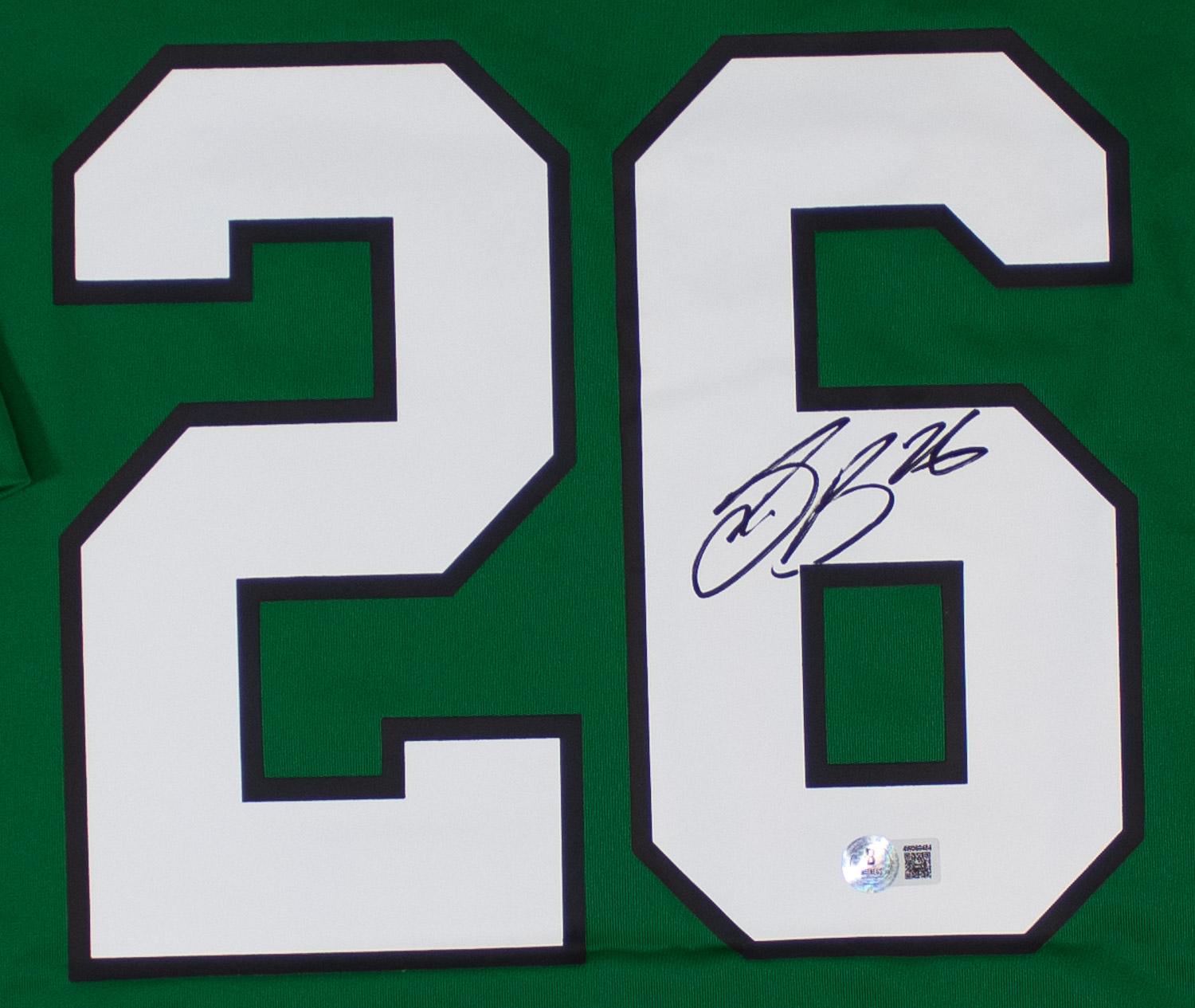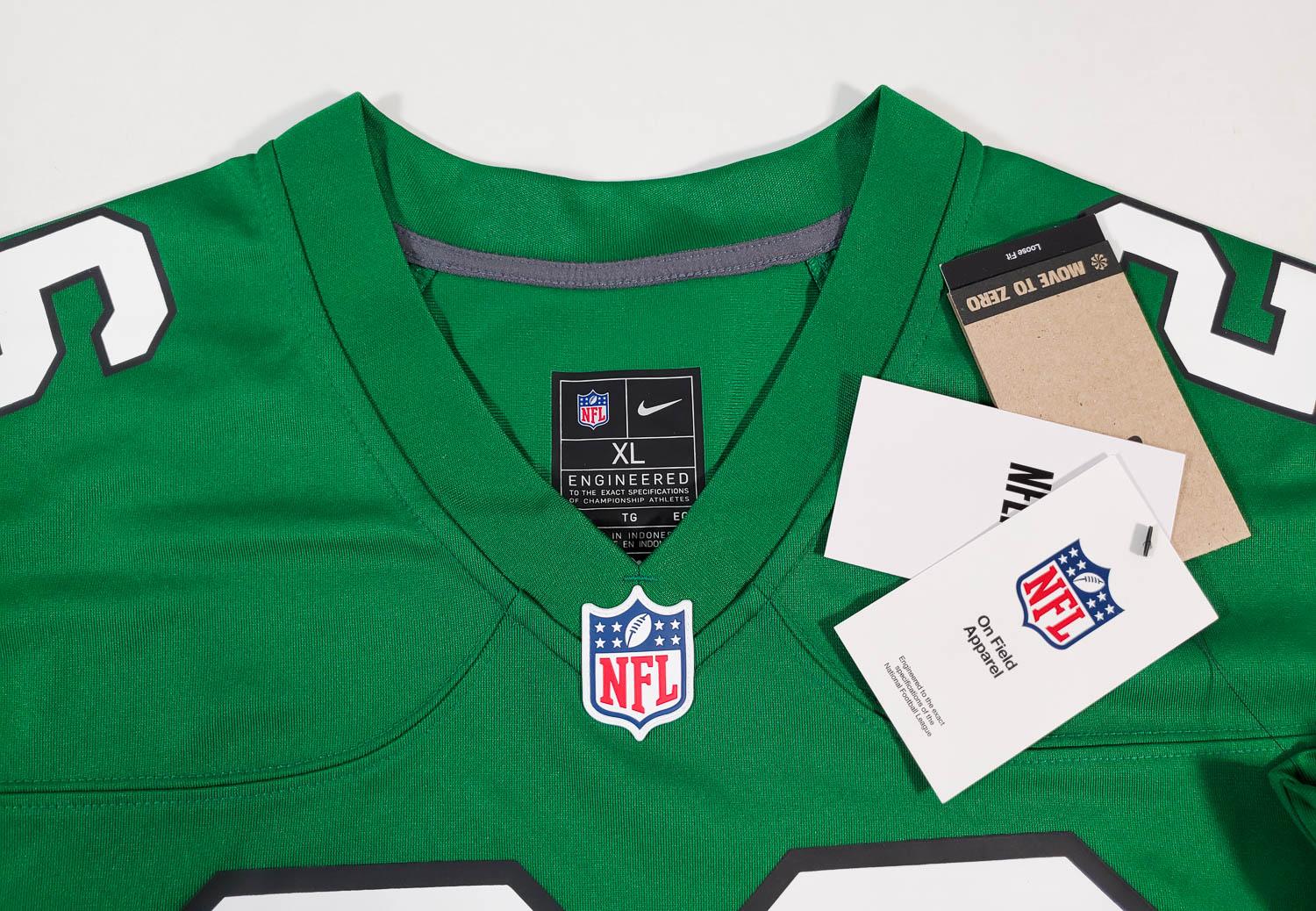 This autographed Nike jersey has been personally hand-signed by Saquon Barkley of the Philadelphia Eagles. This autograph is certified by Beckett Authentication Services (BAS) Witness Certification. That means that a Beckett representative was present when this item was signed. It comes with the numbered authentication hologram with a QR code that verifies the authentication on the Beckett website.