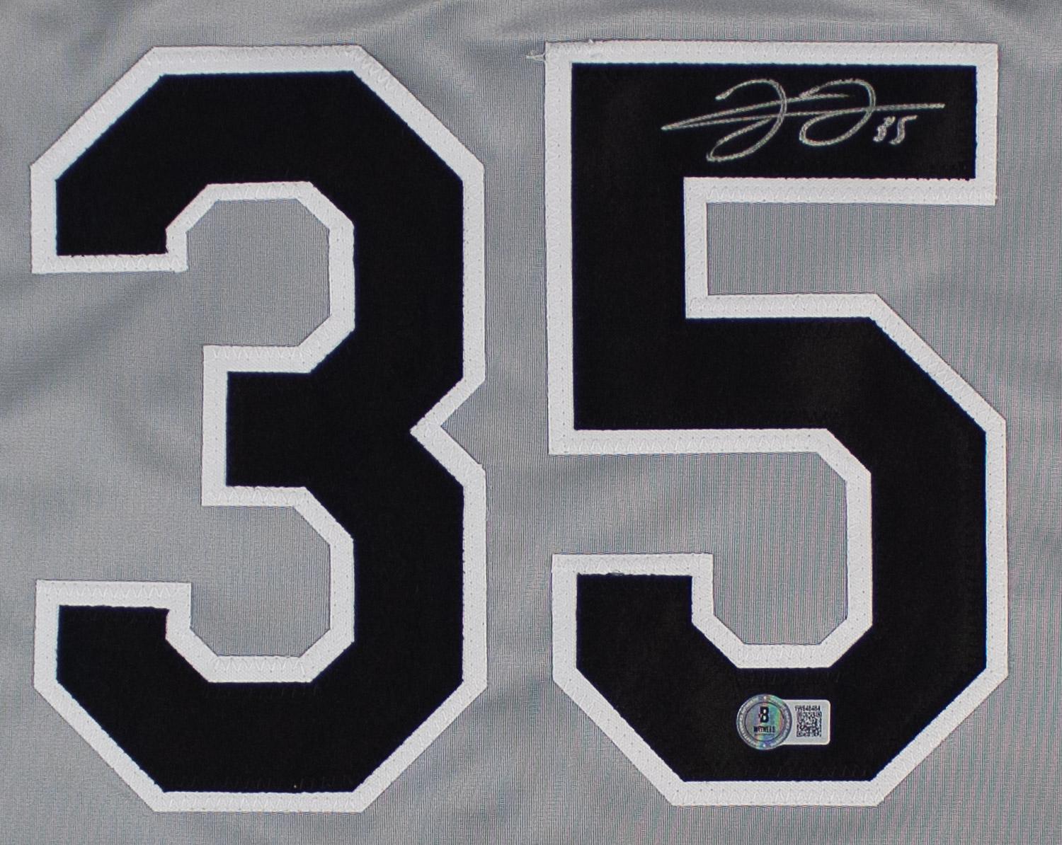 This autographed jersey has been personally hand-signed by Frank Thomas of the Chicago White Sox. This autograph is certified by Beckett Authentication Services (BAS) Witness Certification. That means that a Beckett representative was present when this item was signed. It comes with the numbered authentication hologram with a QR code that verifies the authentication on the Beckett website.