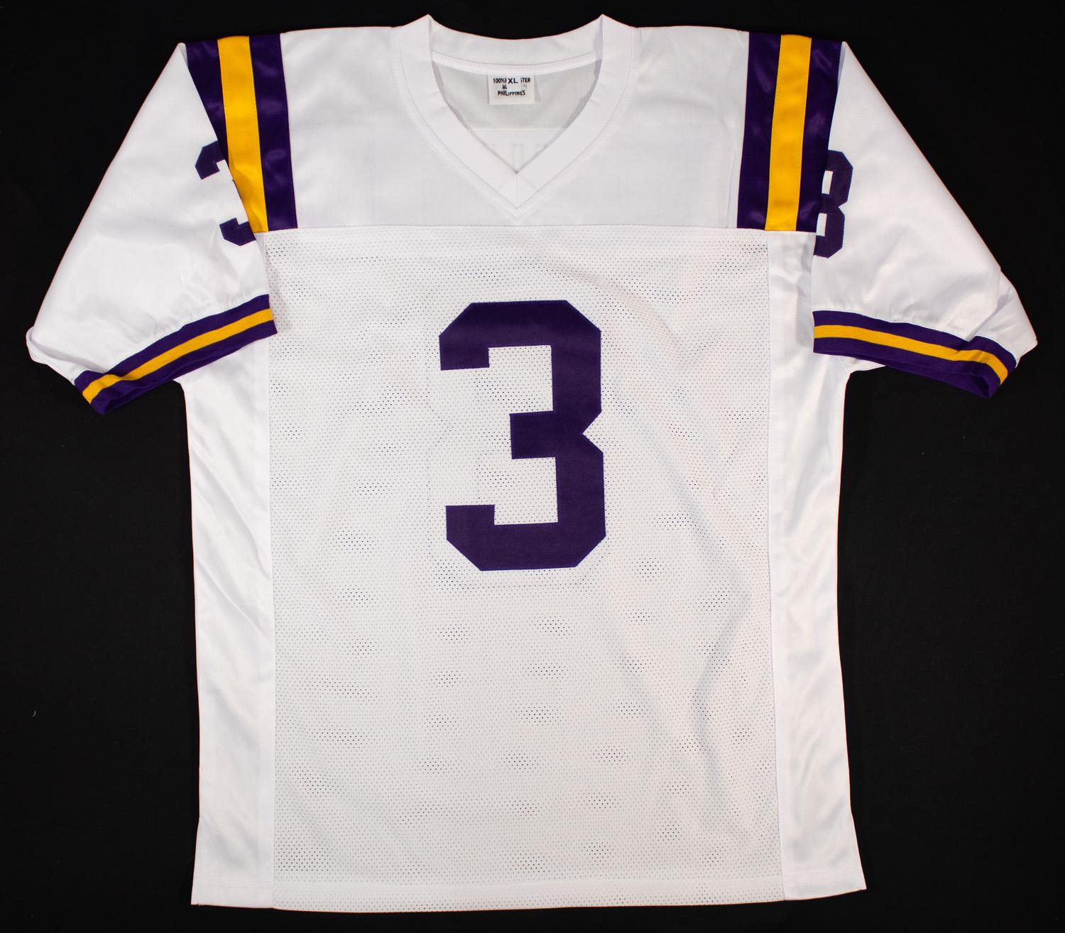 This autographed jersey has been personally hand-signed by Odell Beckham Jr of the LSU Tigers. This autograph is certified by Beckett Authentication Services (BAS) Witness Certification. That means that a Beckett representative was present when this item was signed. It comes with the numbered authentication hologram with a QR code that verifies the authentication on the Beckett website.