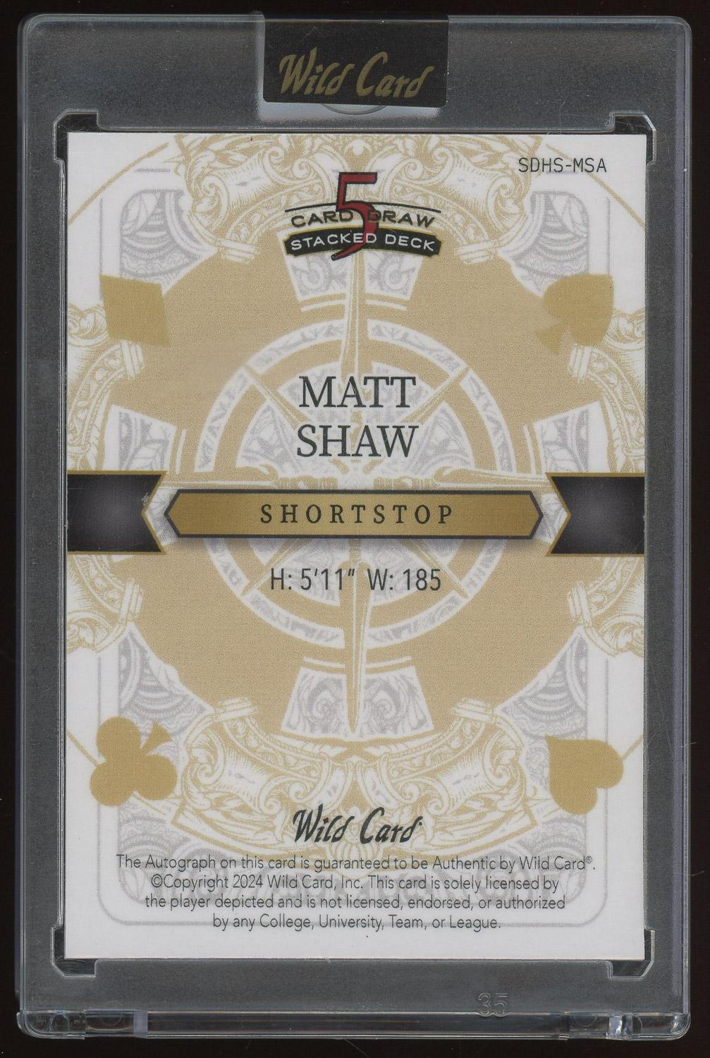 Matt Shaw 2024 Wild Card 5 Card Draw Rookie Auto Card /5