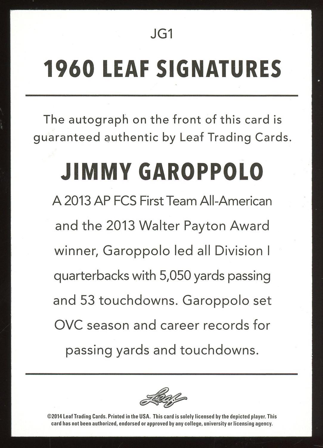 Jimmy Garappolo 2024 Leaf 1960 Style Auto Card