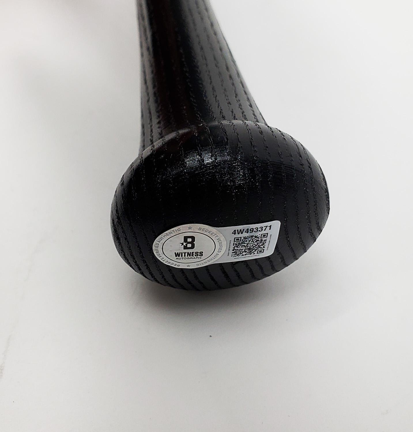 This autographed baseball bat has been personally hand-signed by Elly De La Cruz of the Cincinnati Reds. This autograph is certified by Beckett Authentication Services (BAS) Witness Certification. That means that a Beckett representative was present when this item was signed. It comes with the numbered authentication hologram with a QR code that verifies the authentication on the Beckett website.