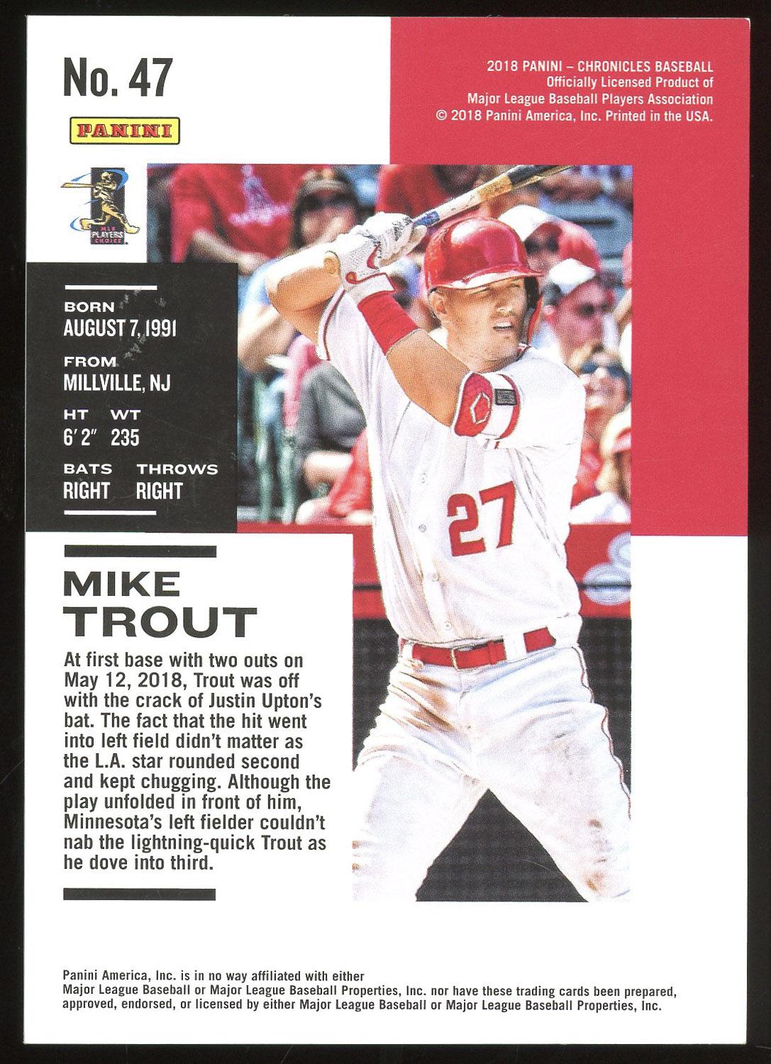 Mike Trout 2018 Panini Chronicles Press Proof A Beast on the Base Paths Card /299