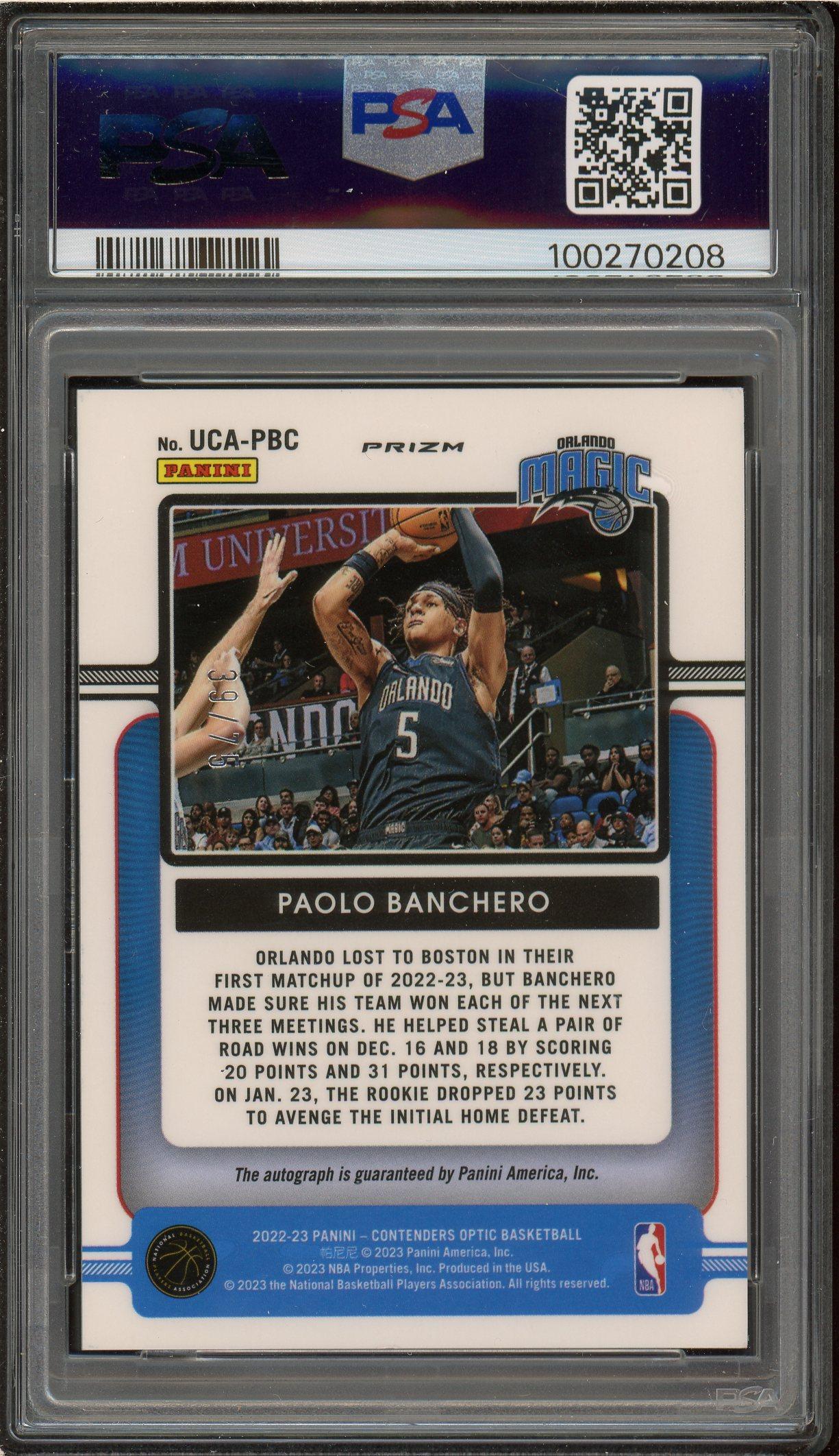Paolo Banchero 2022 Panini Contenders Optic Up and Coming Auto Rookie Card/75 PSA 8 Auto 10 POP 2, 5 Higher!