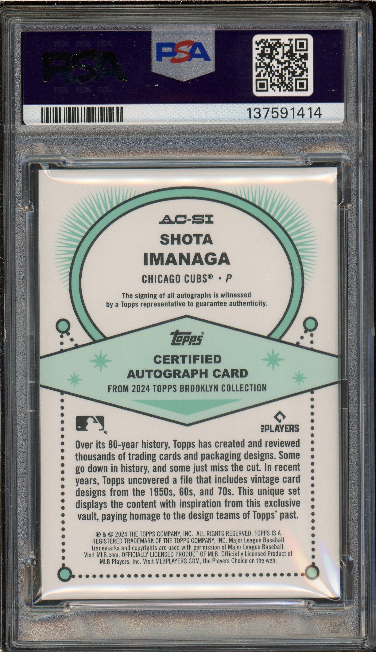 Shota Imanaga 2024 Topps Brooklyn Collection Gold Auto Rookie Card /10 PSA 9: POP 3, 5 Higher!