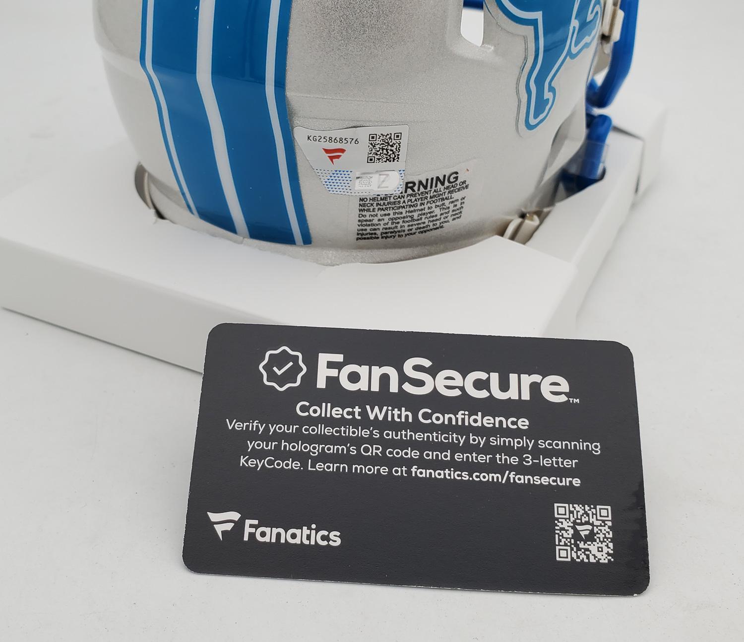 This autographed mini helmet has been personally hand-signed by Jared Goff of the Detroit Lions. This autograph is certified by Fanatics. It comes with the numbered hologram which can be verified on Fanatics.com.